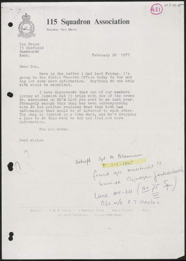 Brief van Don Bruce, Hawkhurst, Kent, Engeland, 28 f...
