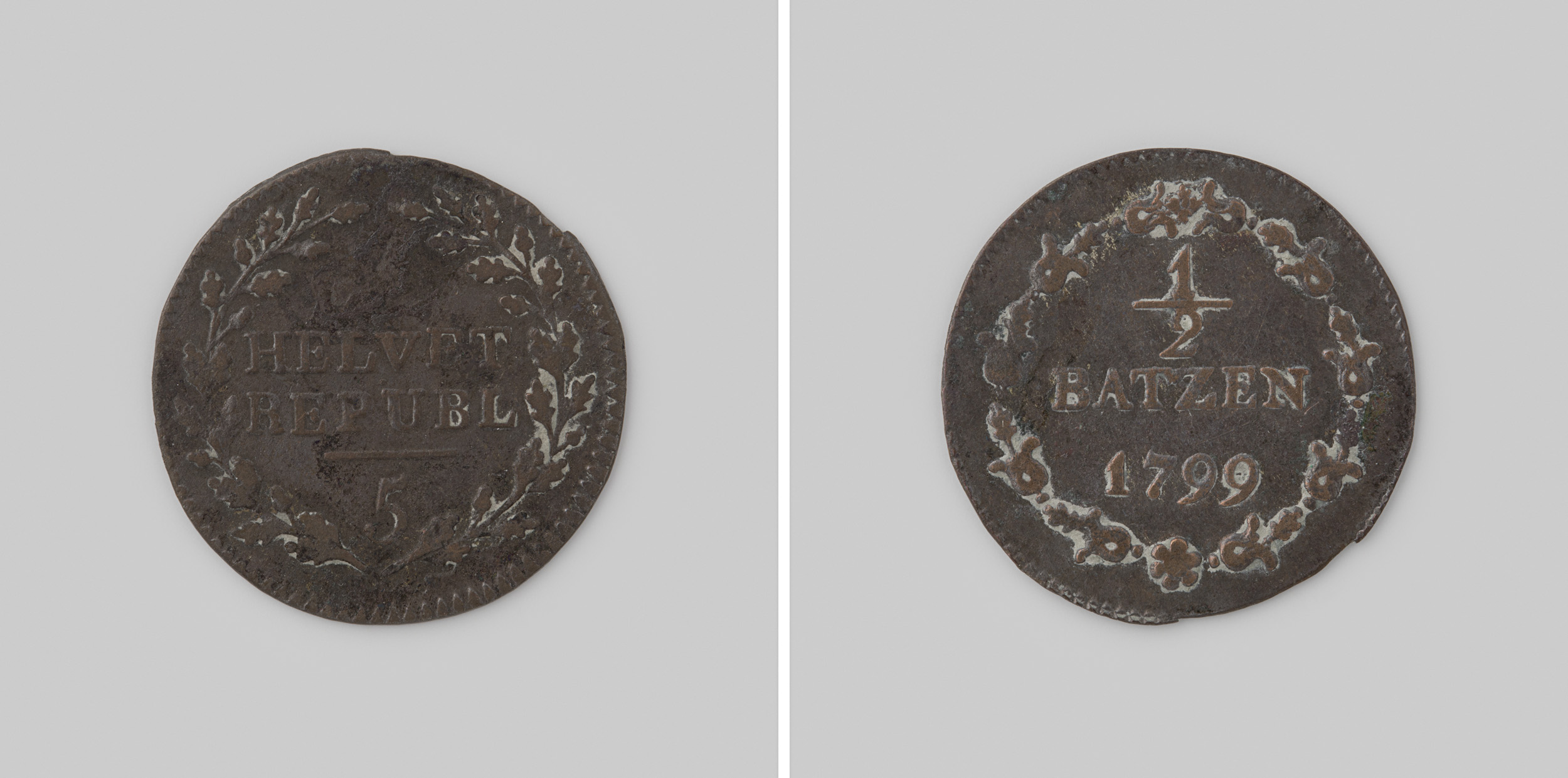 ½ Batzen of 5 rappen uit de Helvetische Republiek, 1799