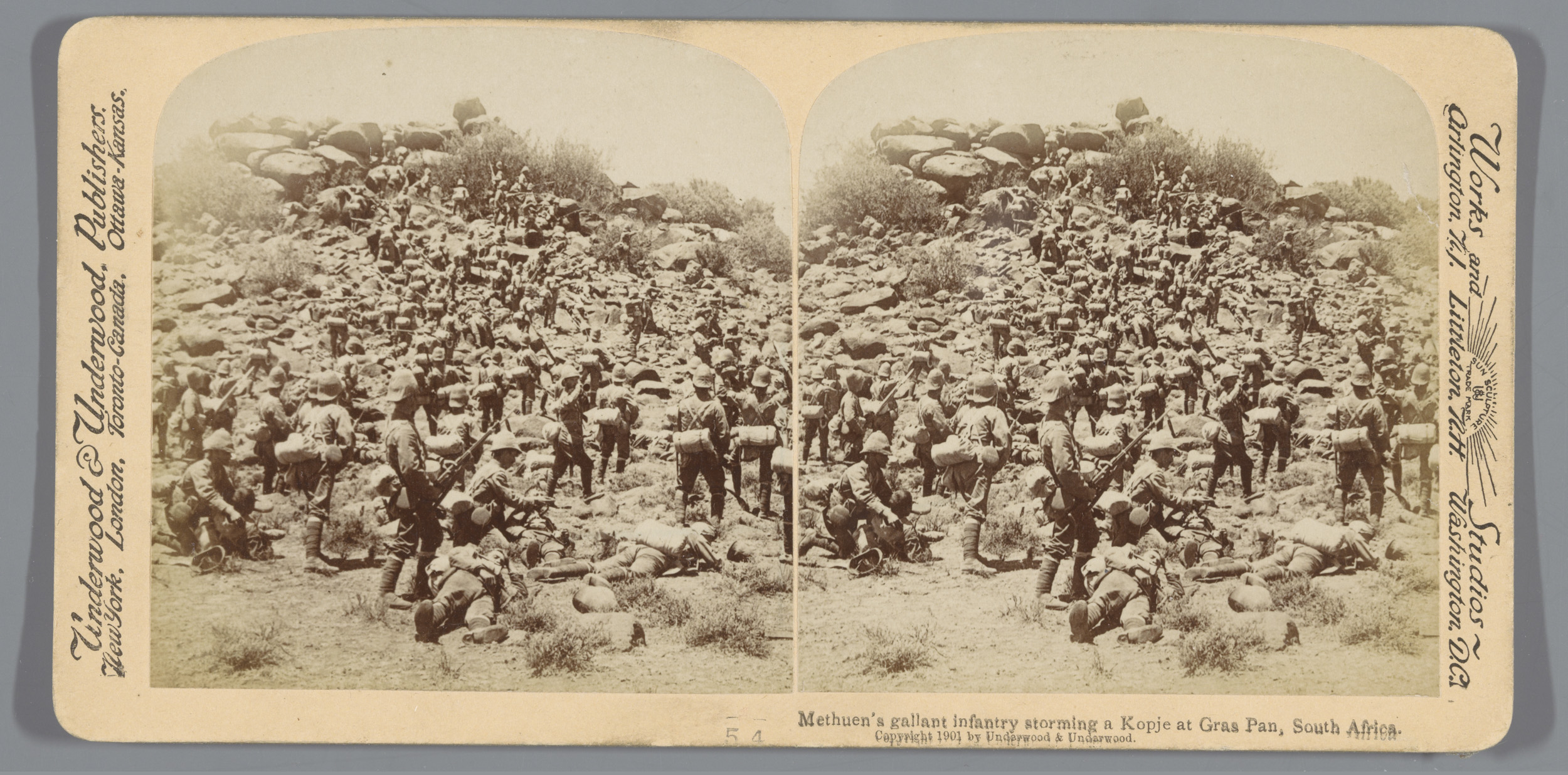 Britse soldaten op een vlakte bij Driefontein tijden...