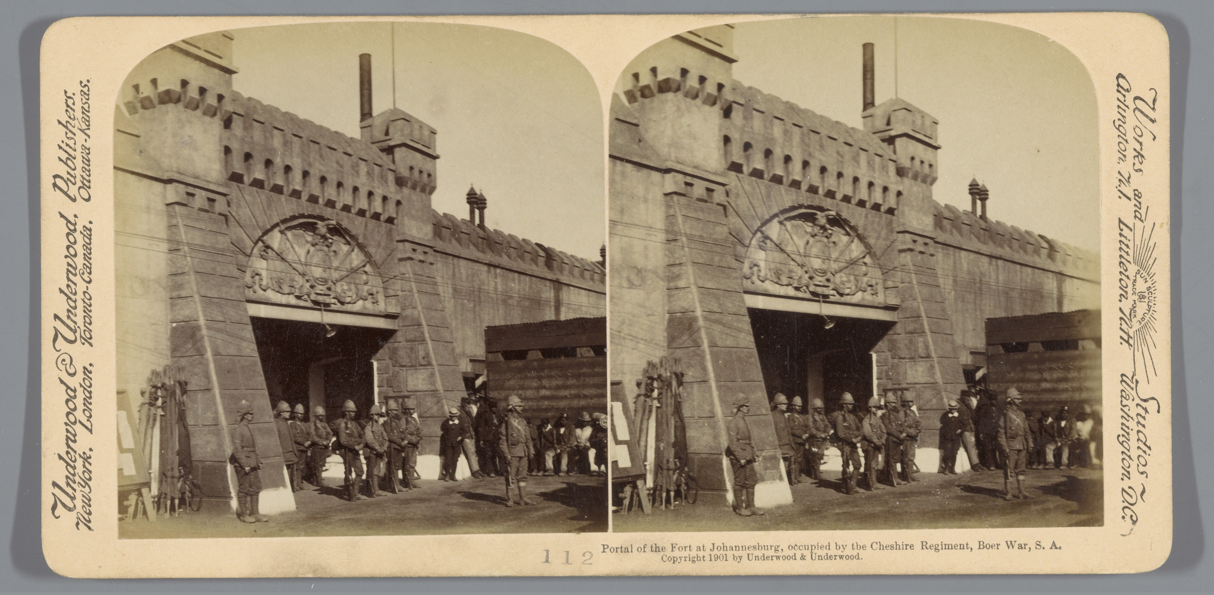 Gezicht op de poort van het Old Fort in Johannesburg...