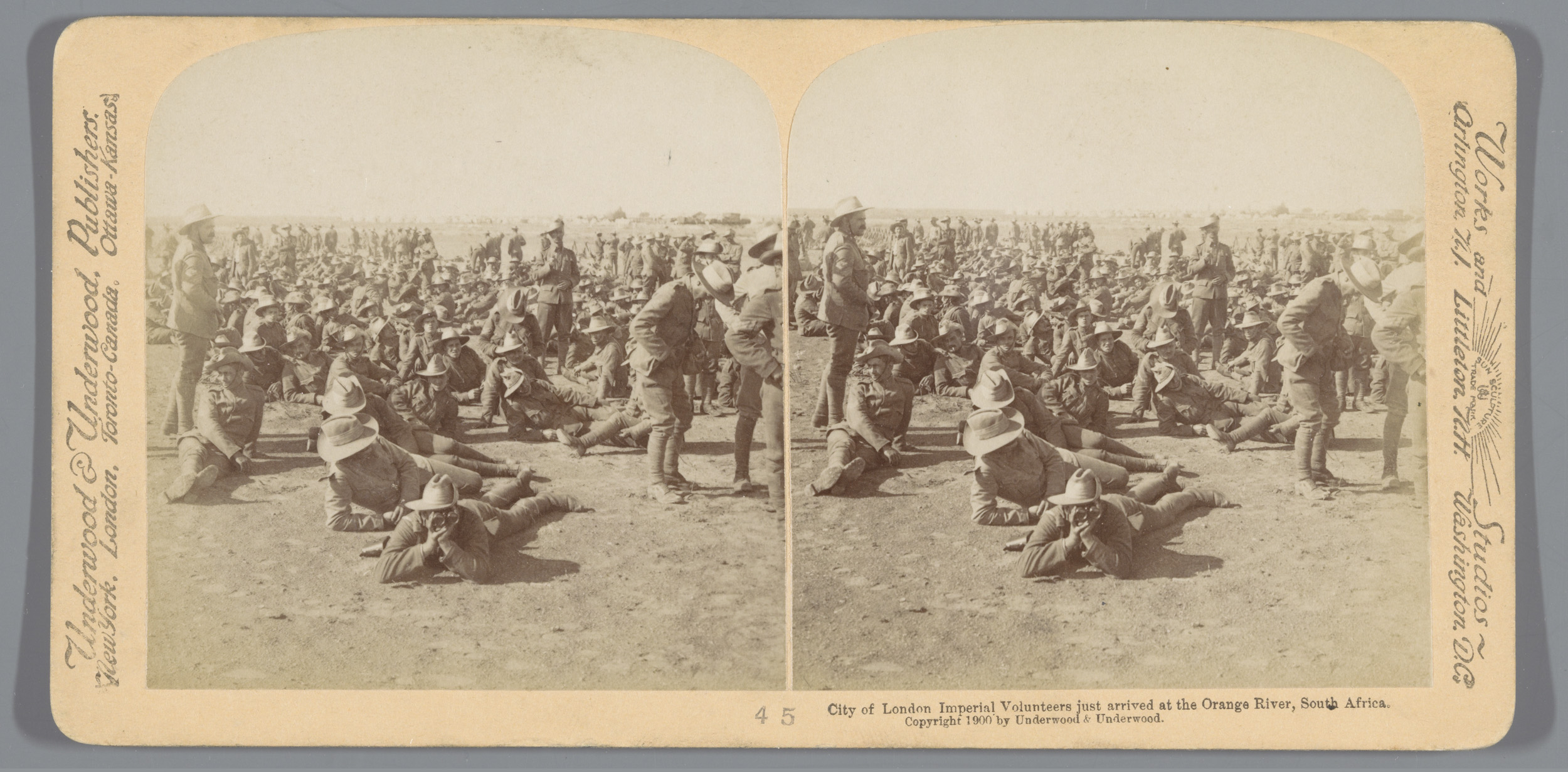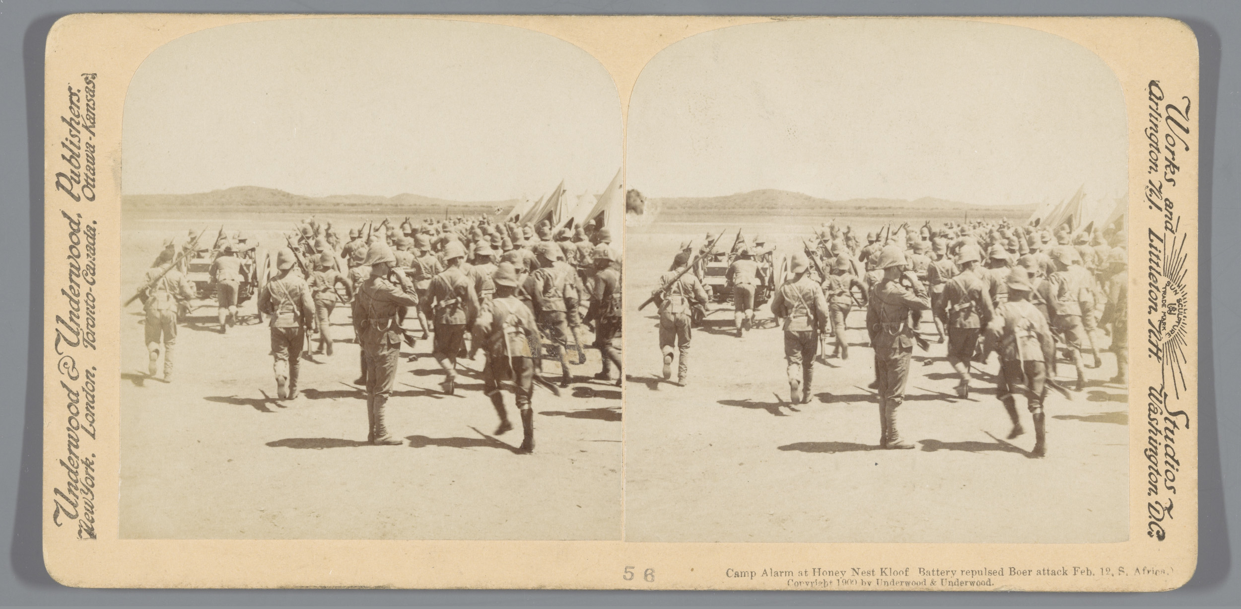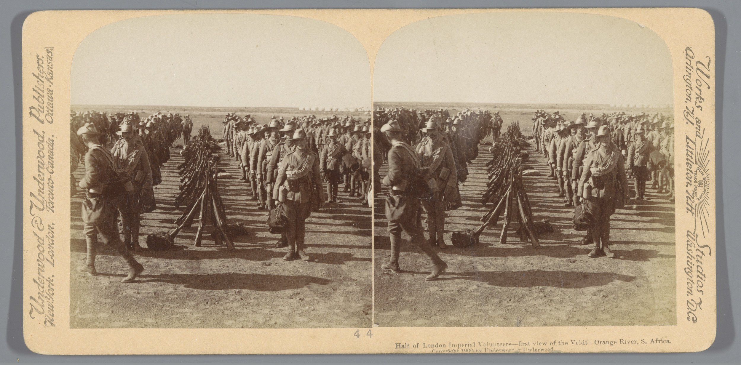 Voorstelling van rijen Britse soldaten bij de Oranje...