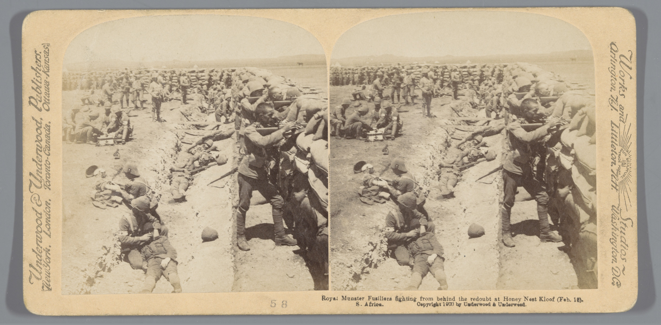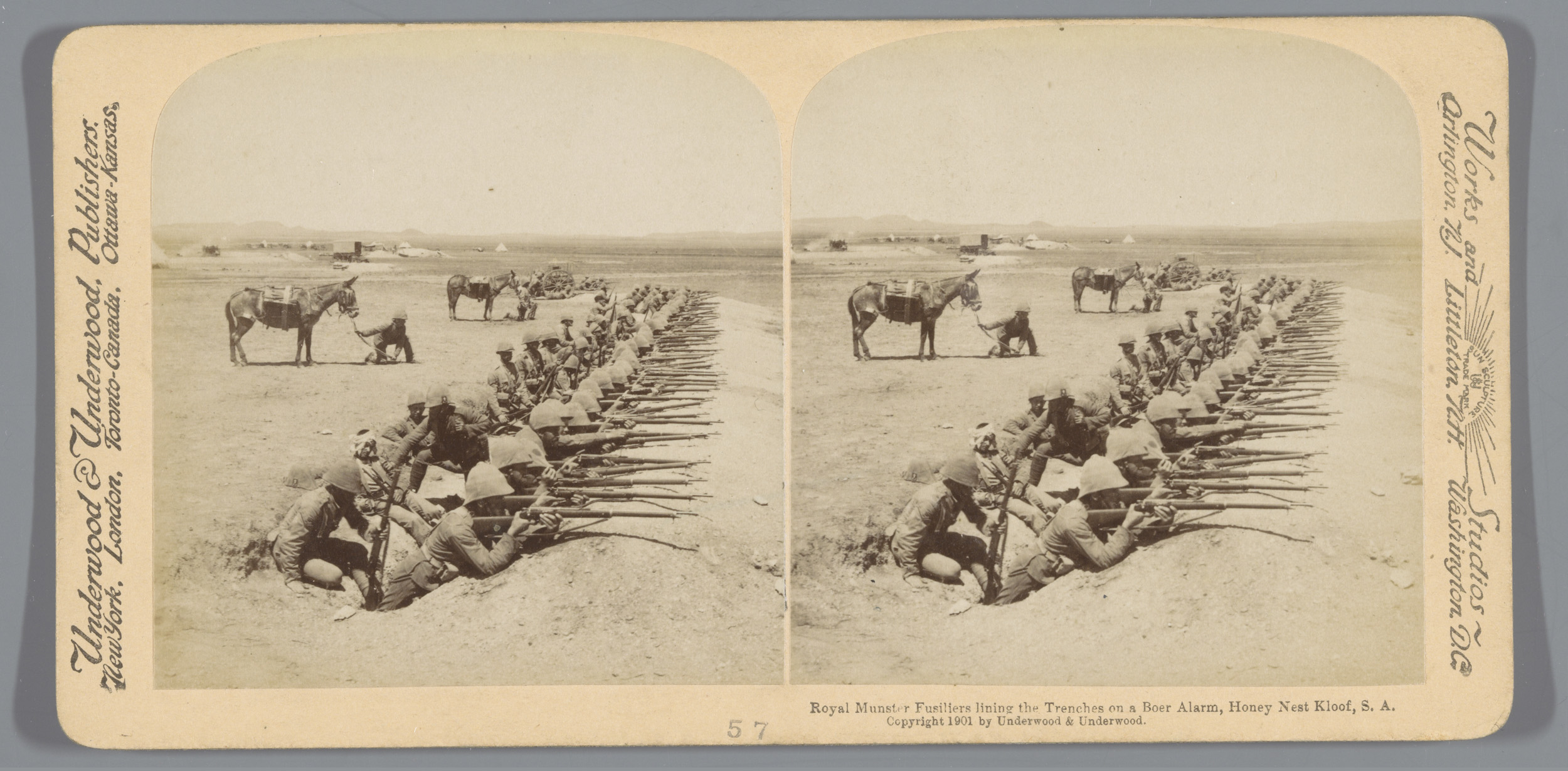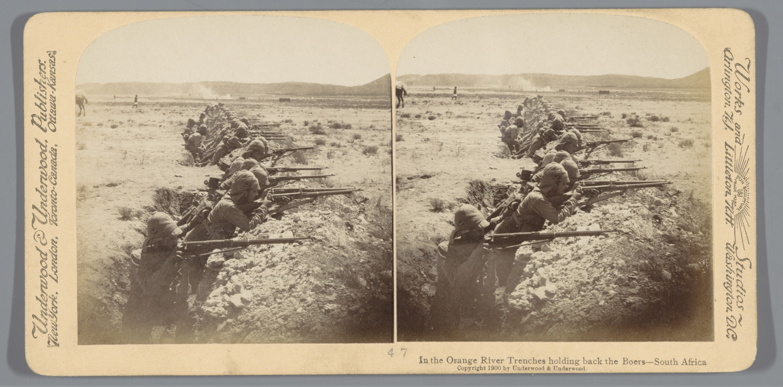 Voorstelling van rijen Britse soldaten bij de Oranje...