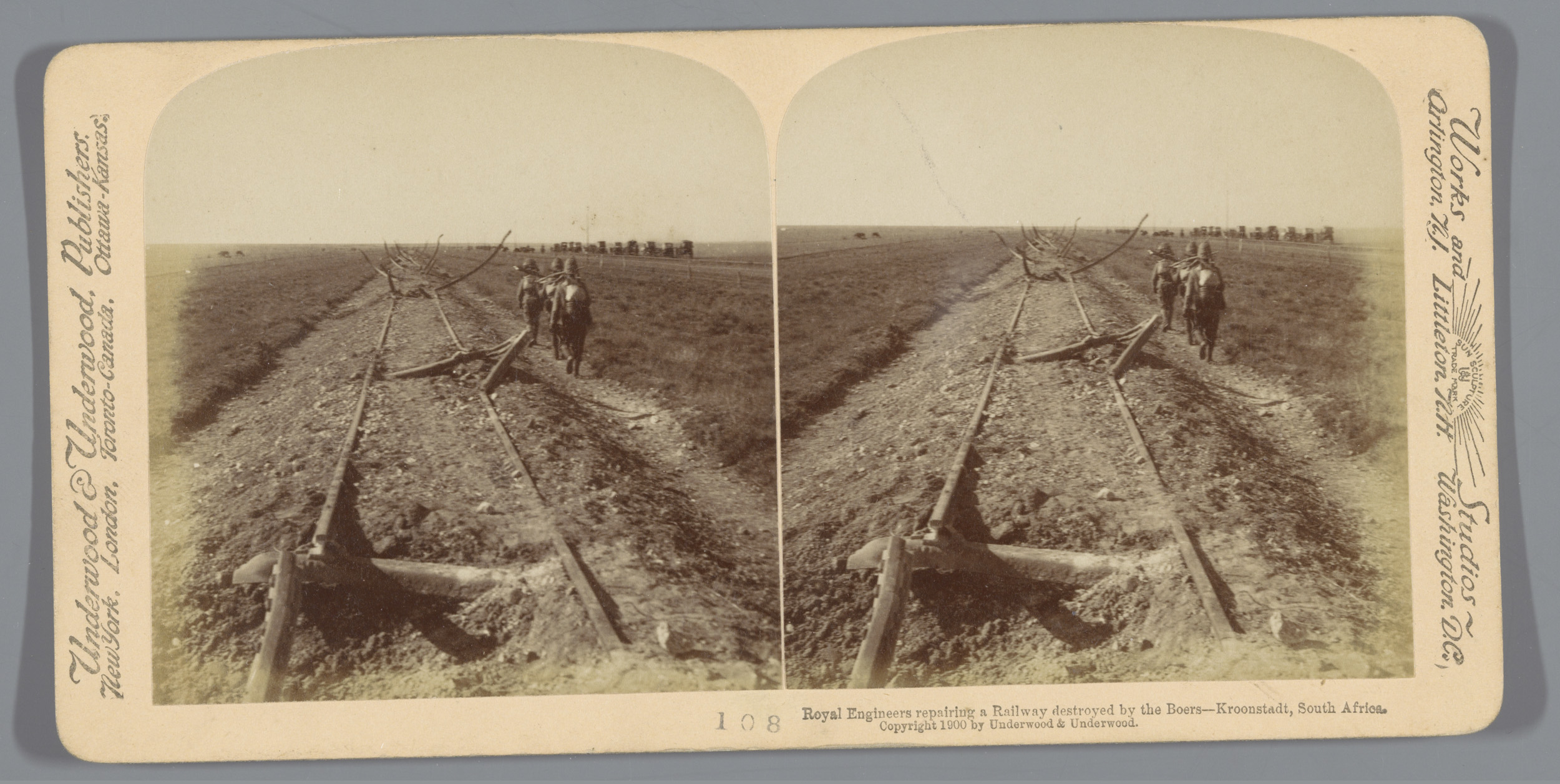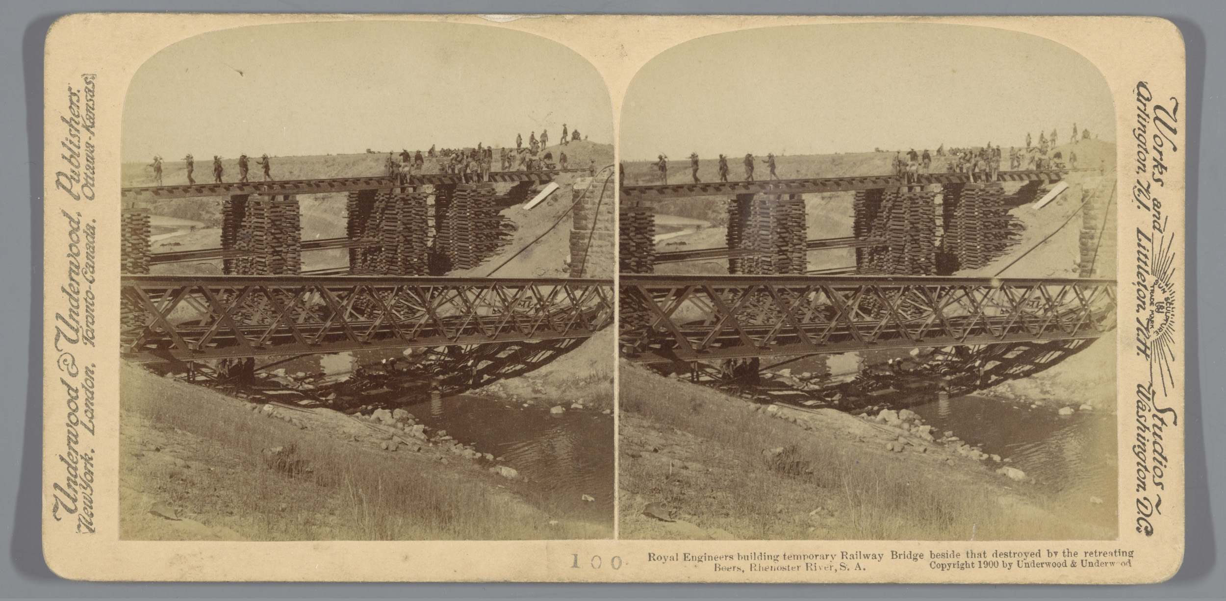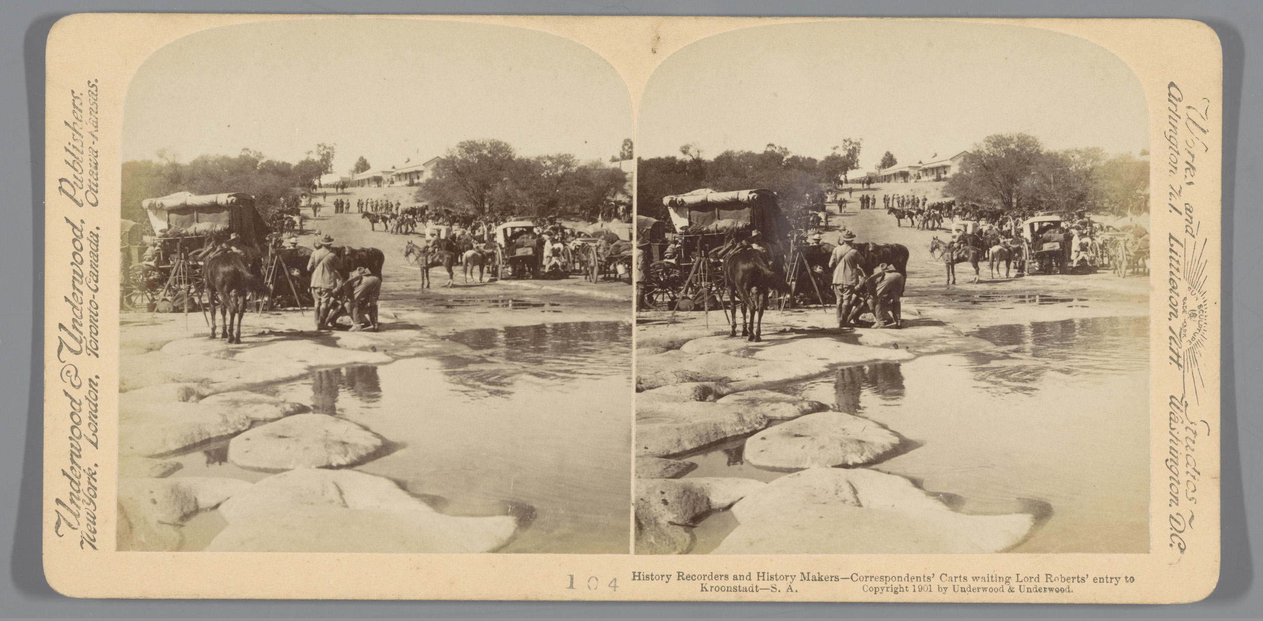 Treinwagon met gewonde soldaten bij de Oranjerivier,...