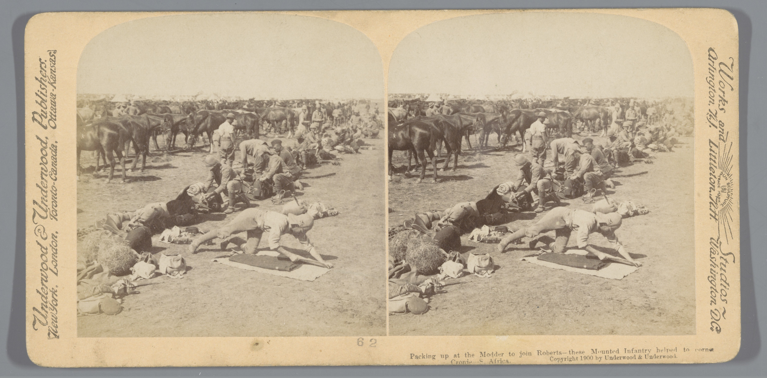 Soldaten pakken hun spullen bij de Modderrivier om z...