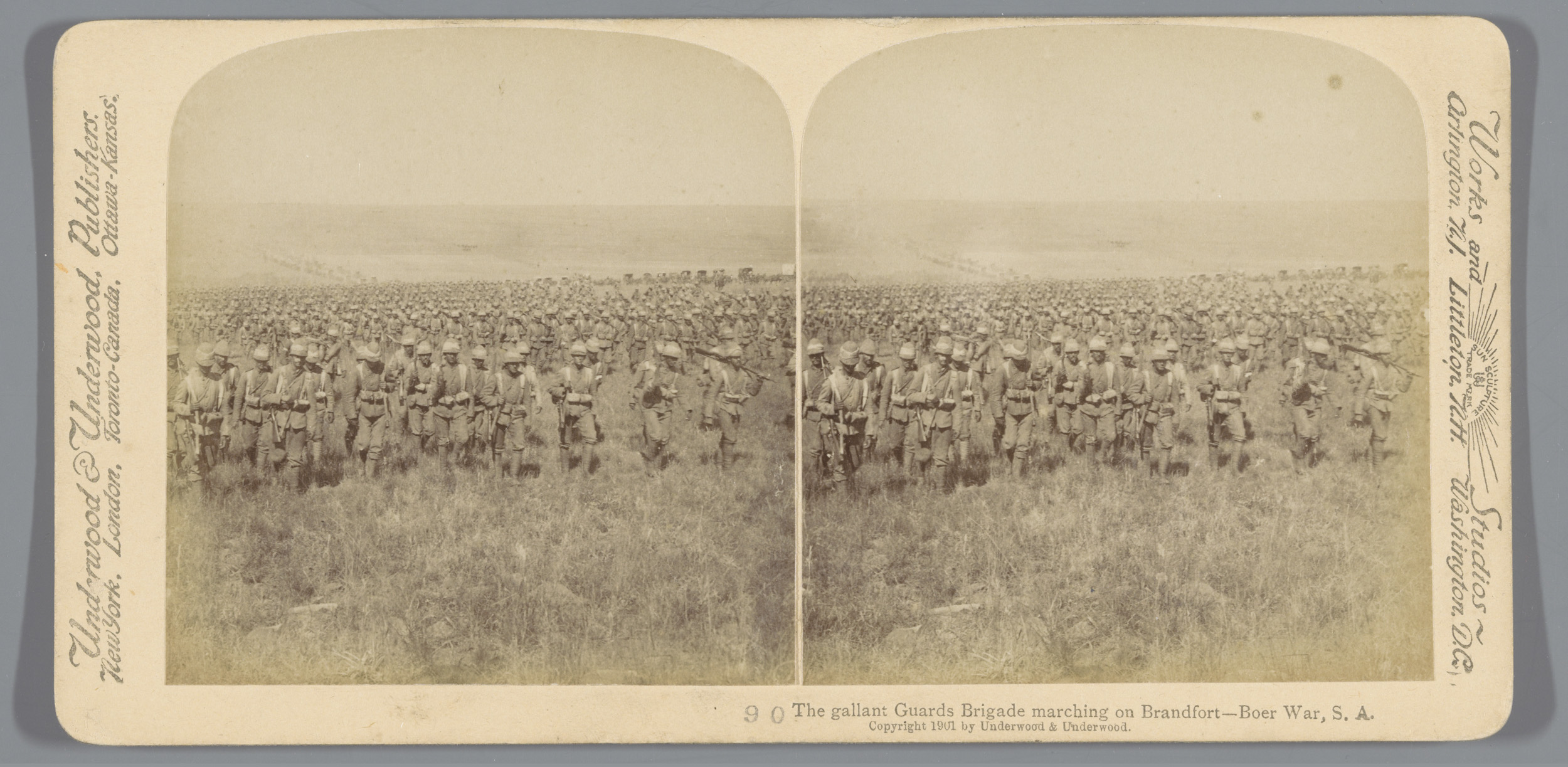 Britse soldaten marcheren naar Brandfort, Zuid-Afrika