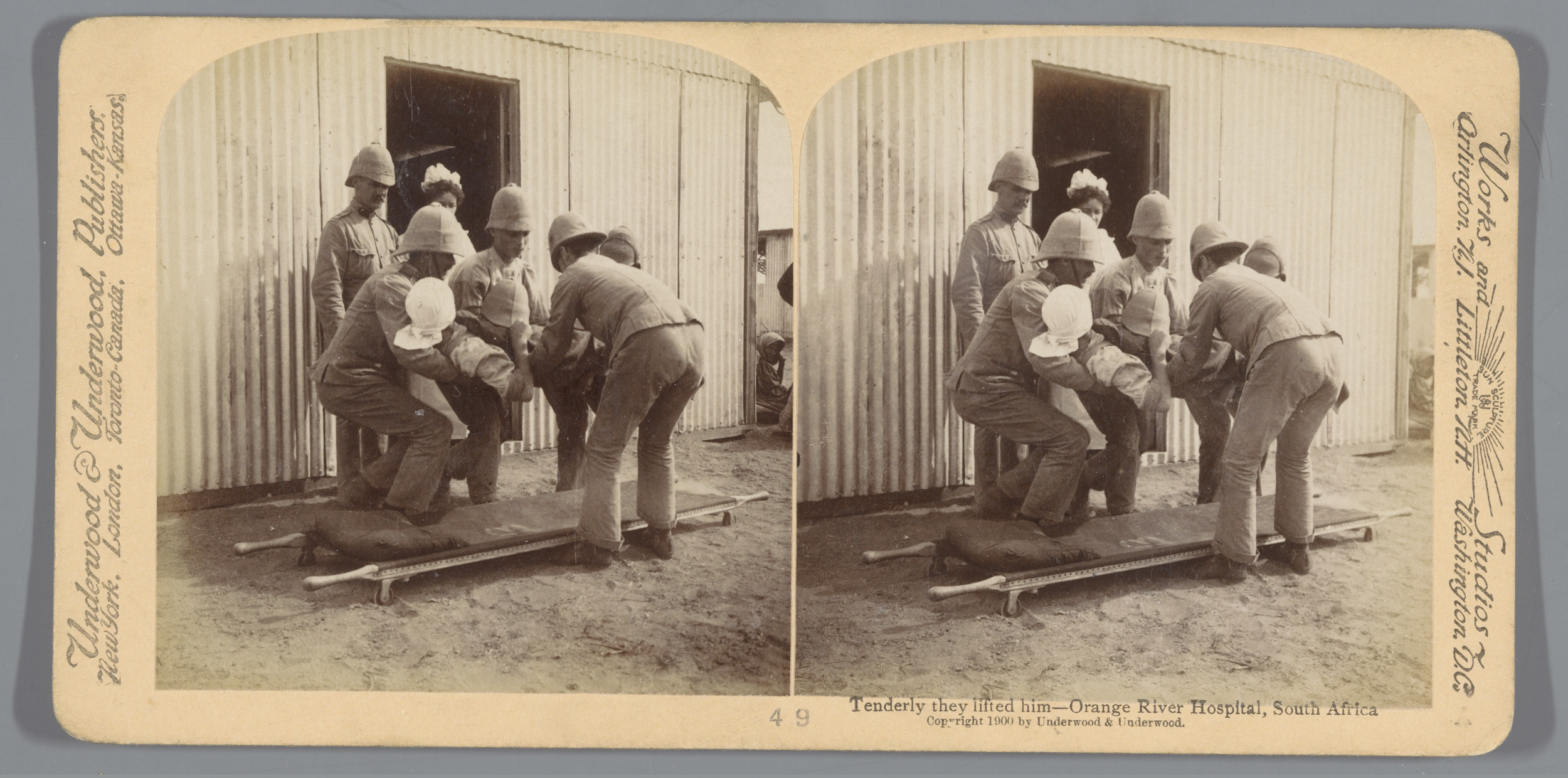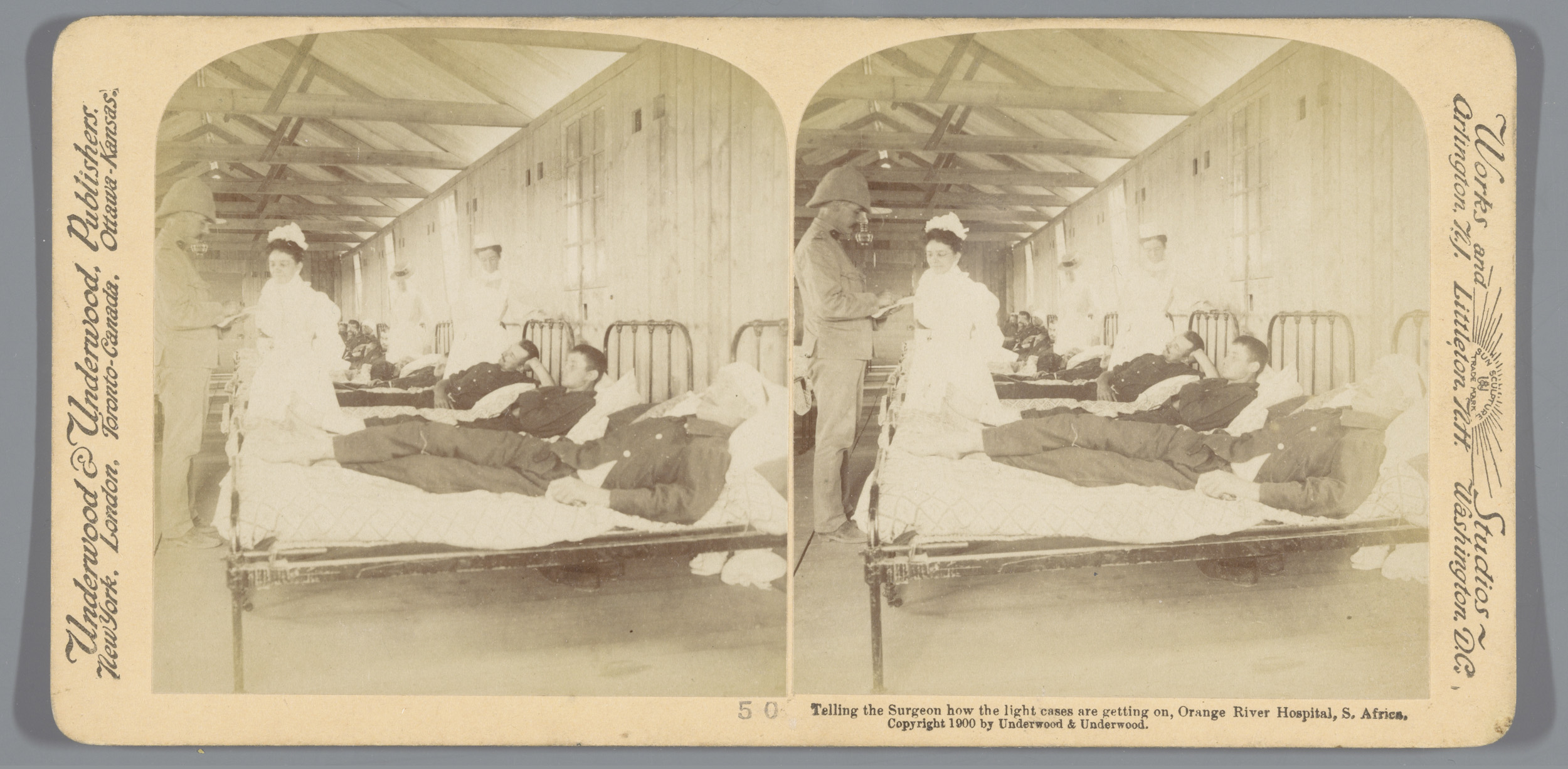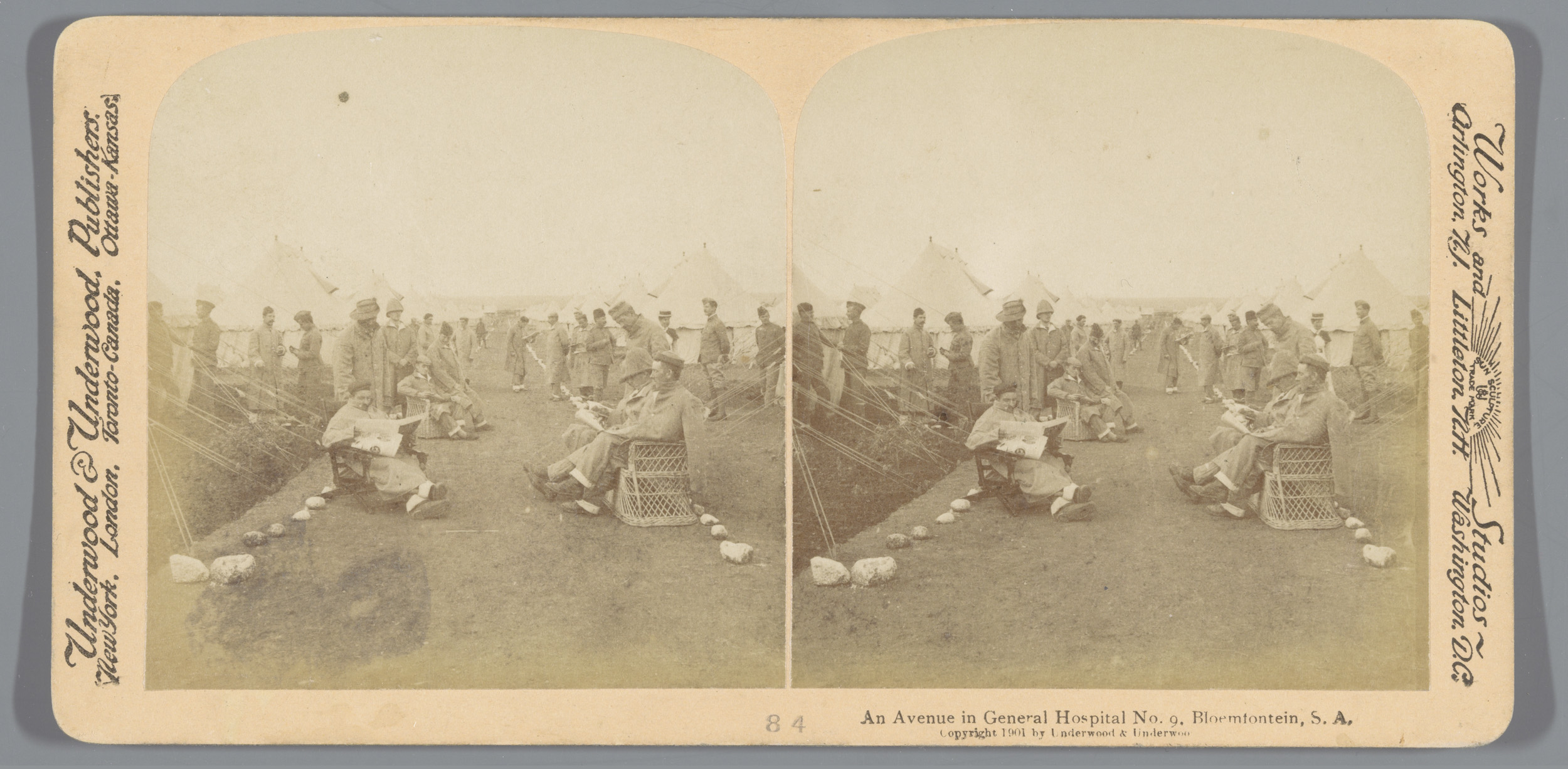 Ziekenzaal met gewonden nabij de Oranjerivier, Zuid-...
