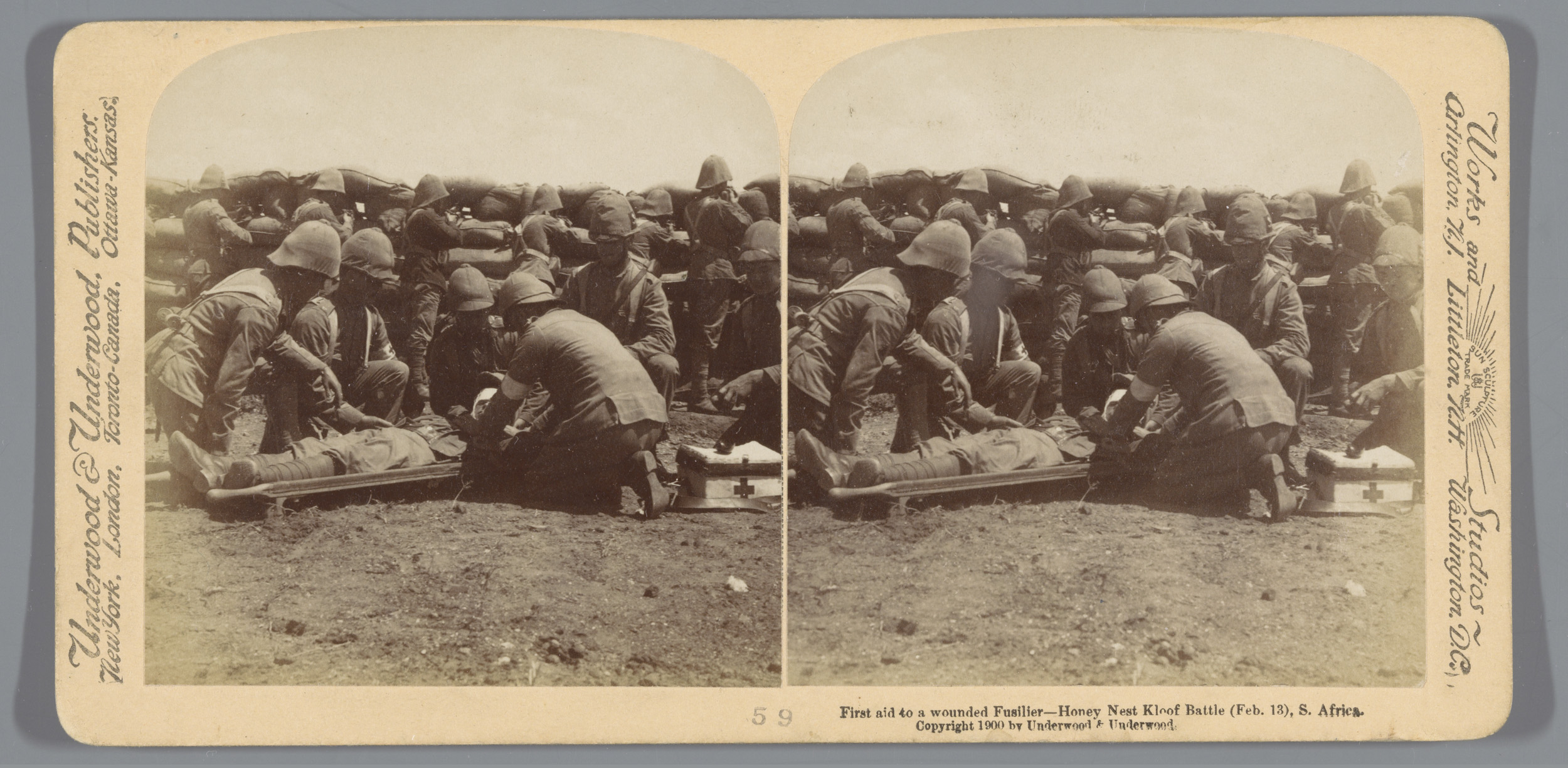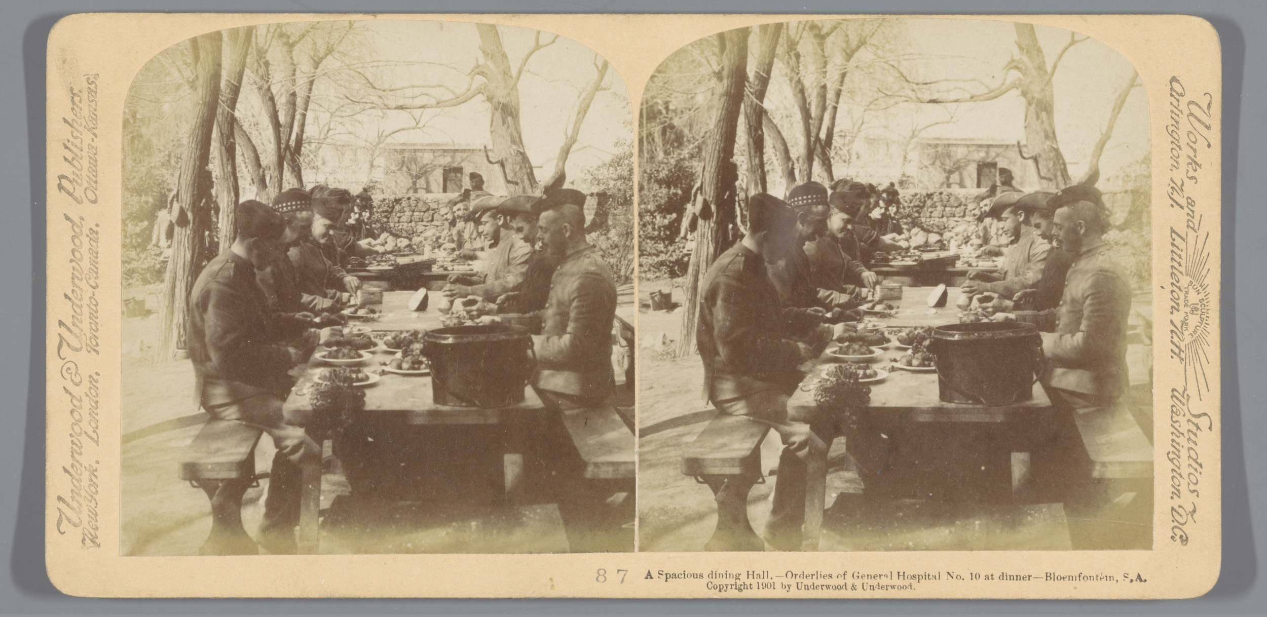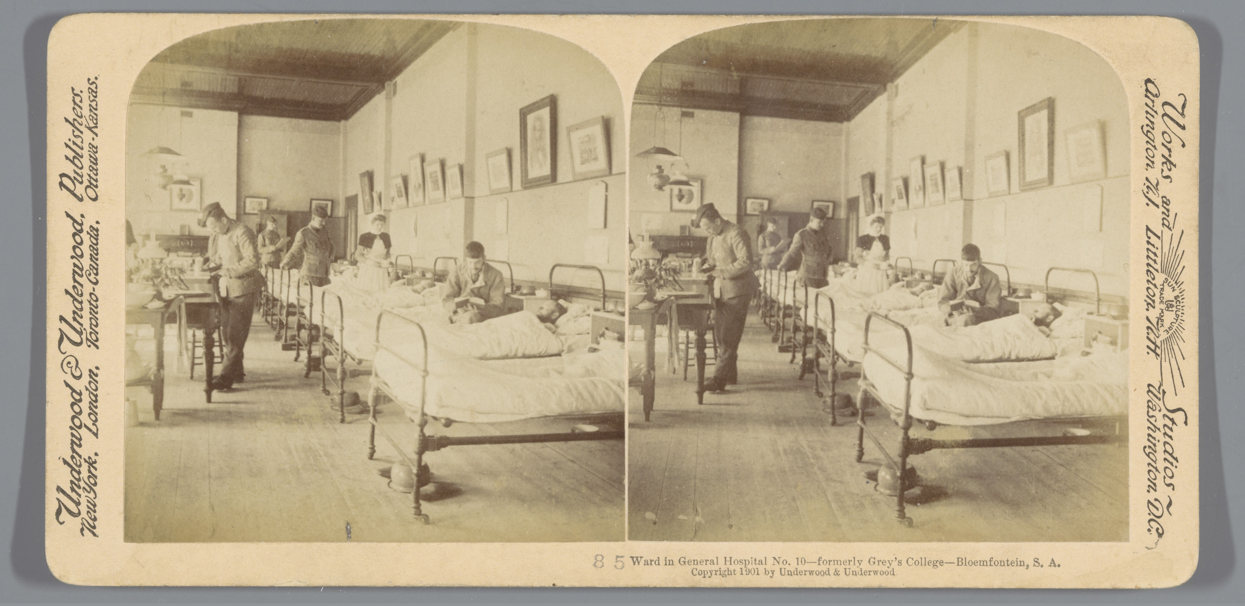 Ziekenzaal met gewonden nabij de Oranjerivier, Zuid-...