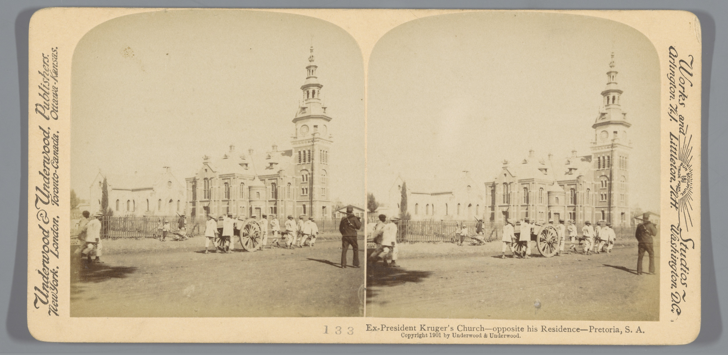 Gezicht op de Verenigde Kerk in Pretoria met op de v...