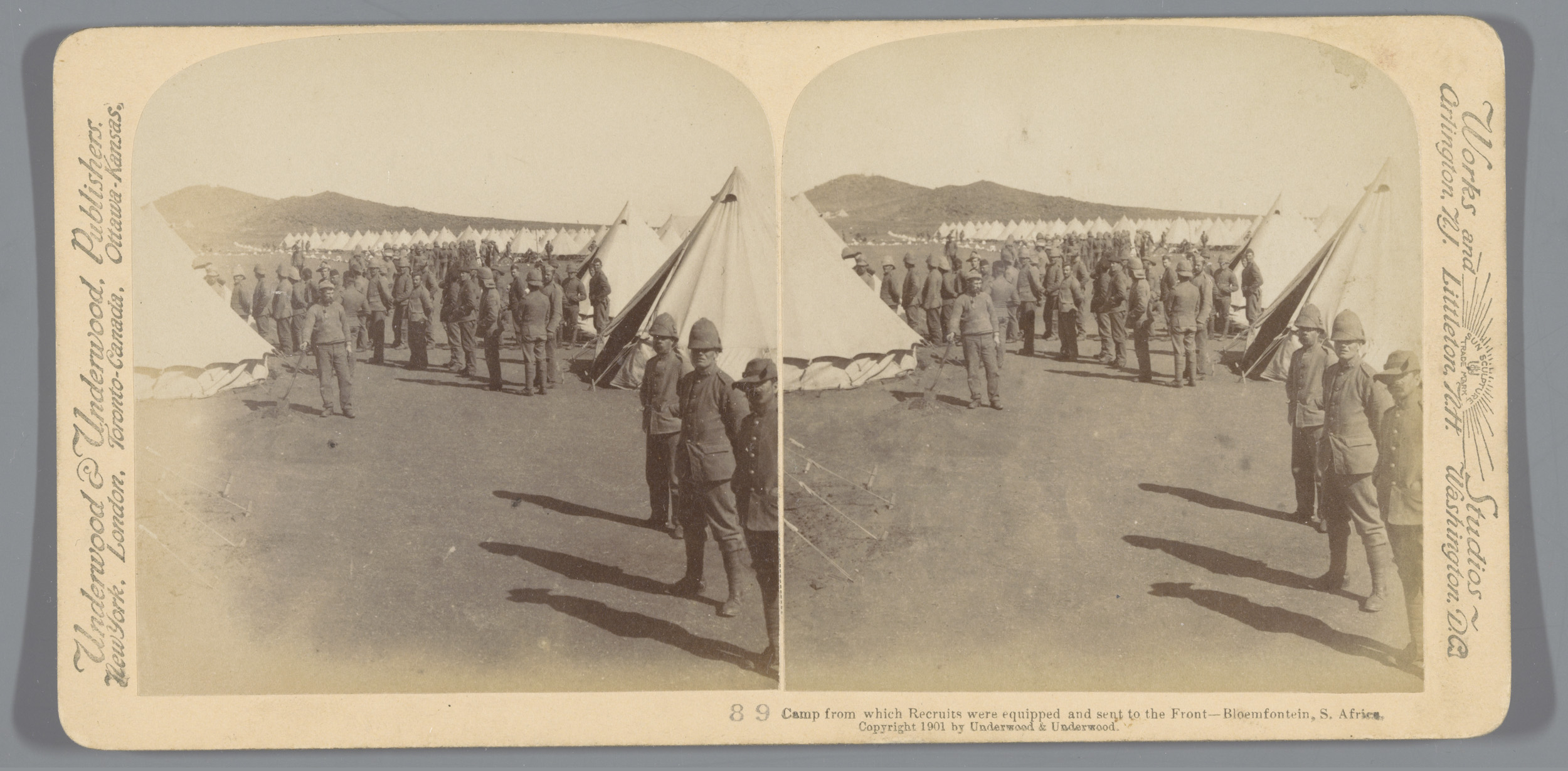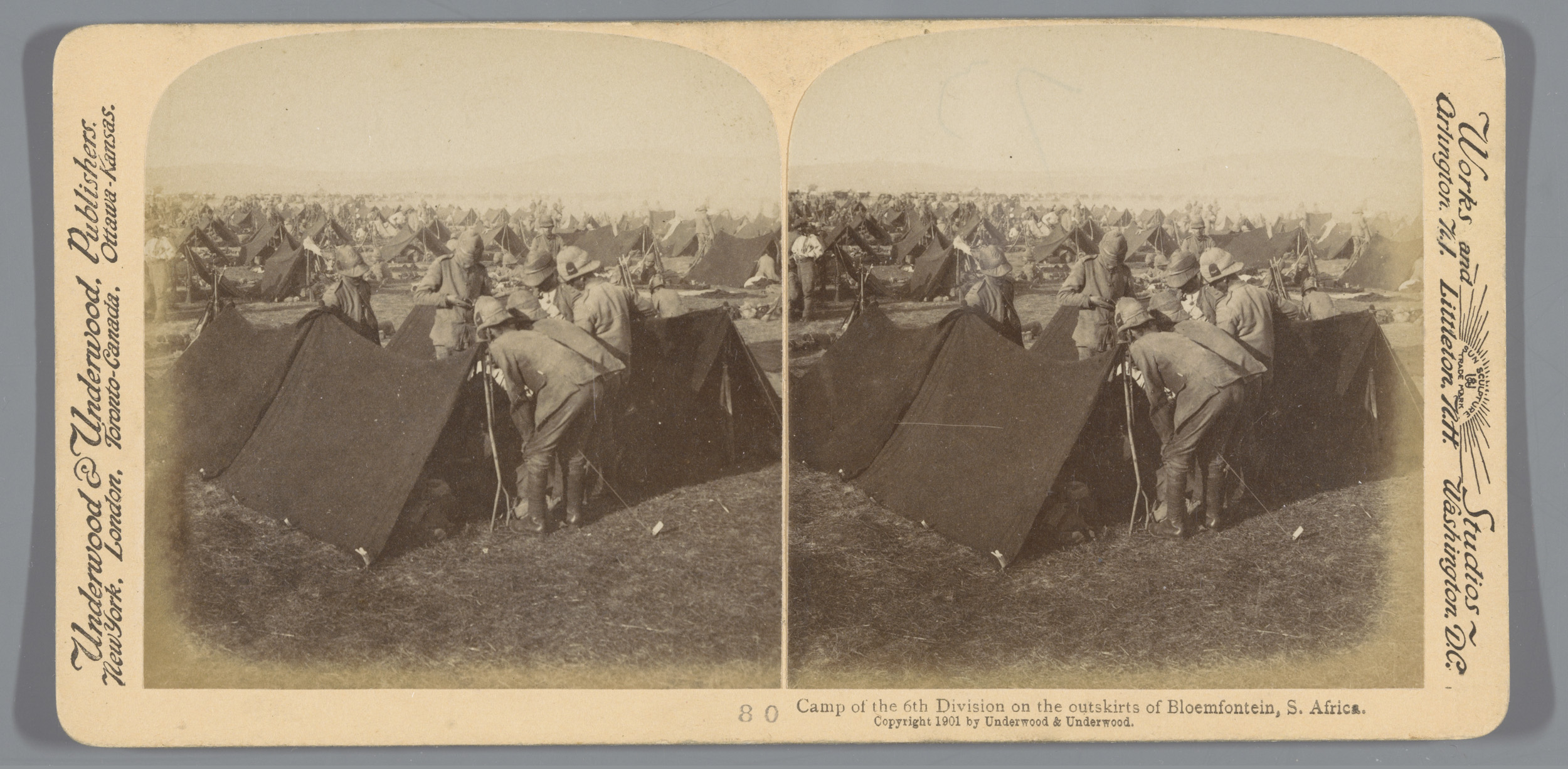 Gezicht op een militair kamp bij Bloemfontein, Zuid-...