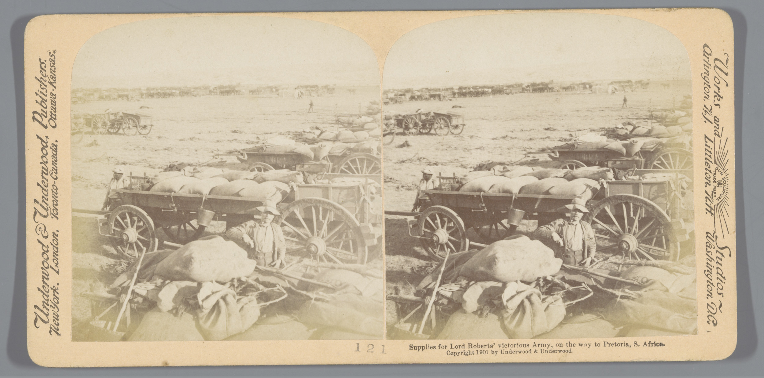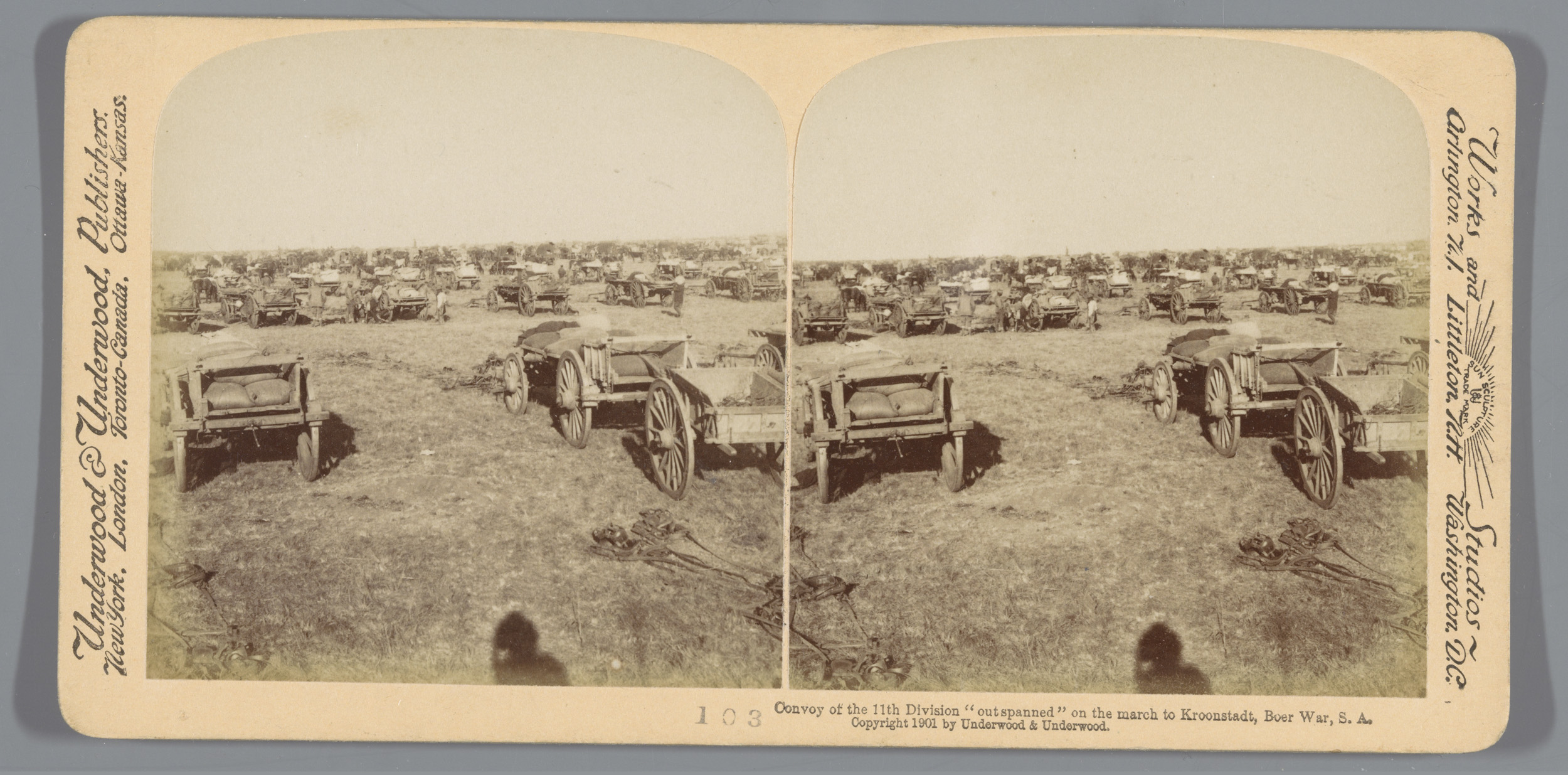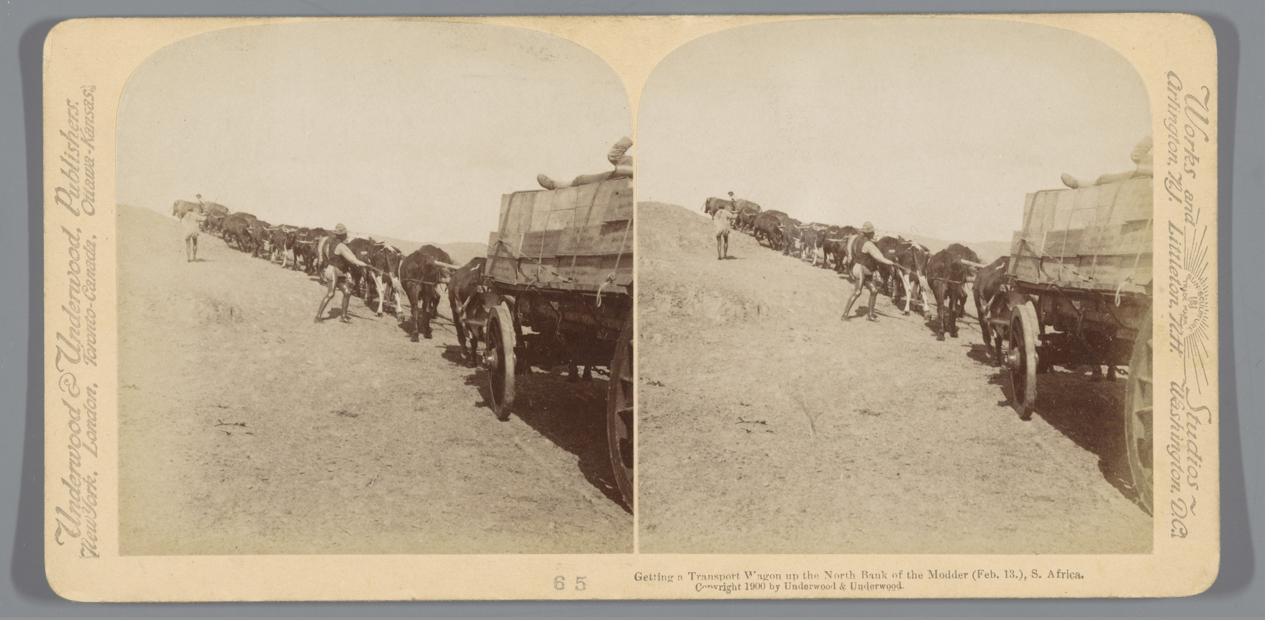 Gezicht op transportkarren onderweg naar Kroonstad, ...