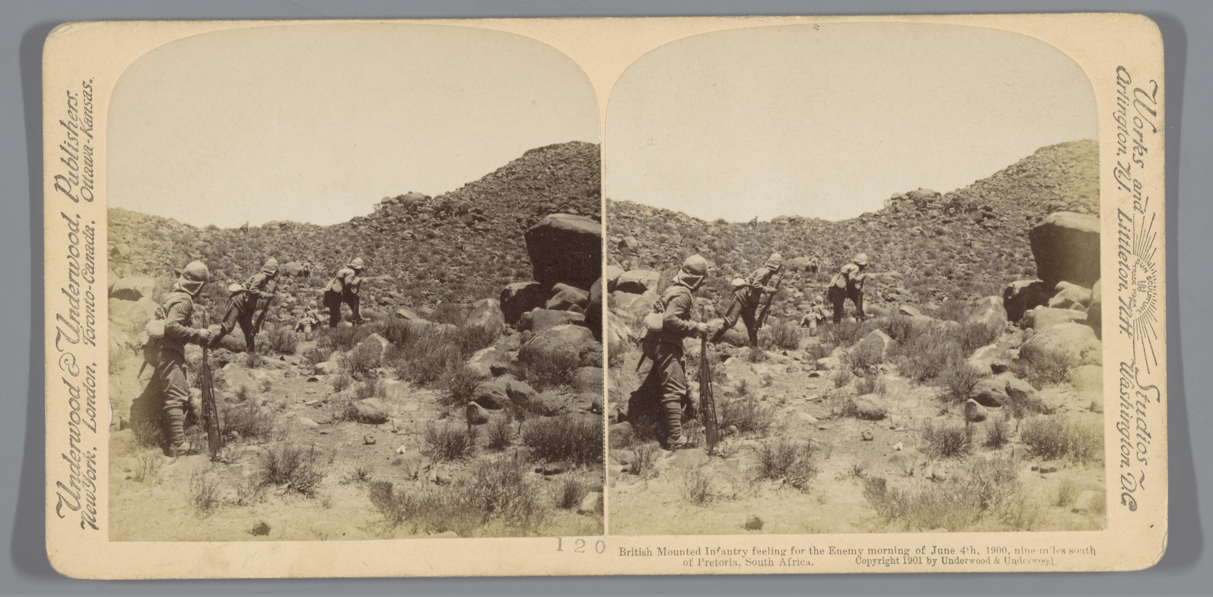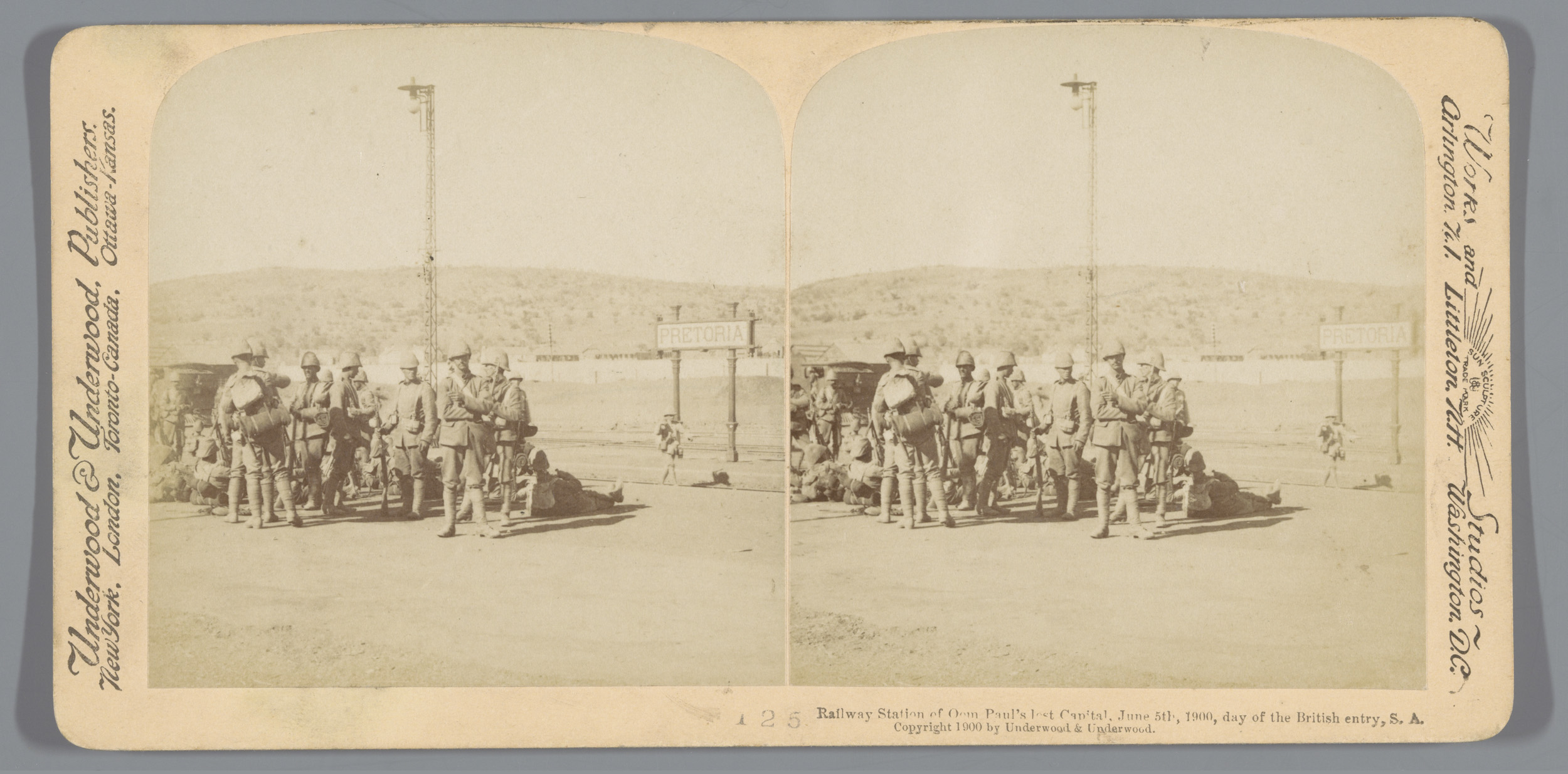 Britse soldaten die tijdens de opmars naar Pretoria ...