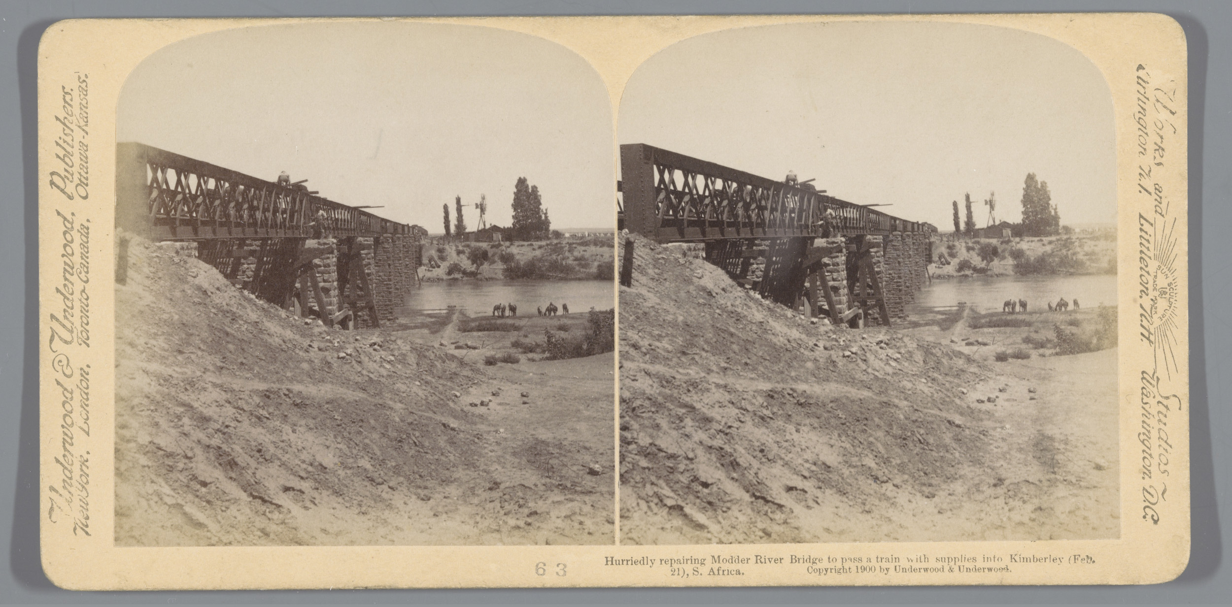 Gezicht op een brug over de Modderrivier, Zuid-Afrika