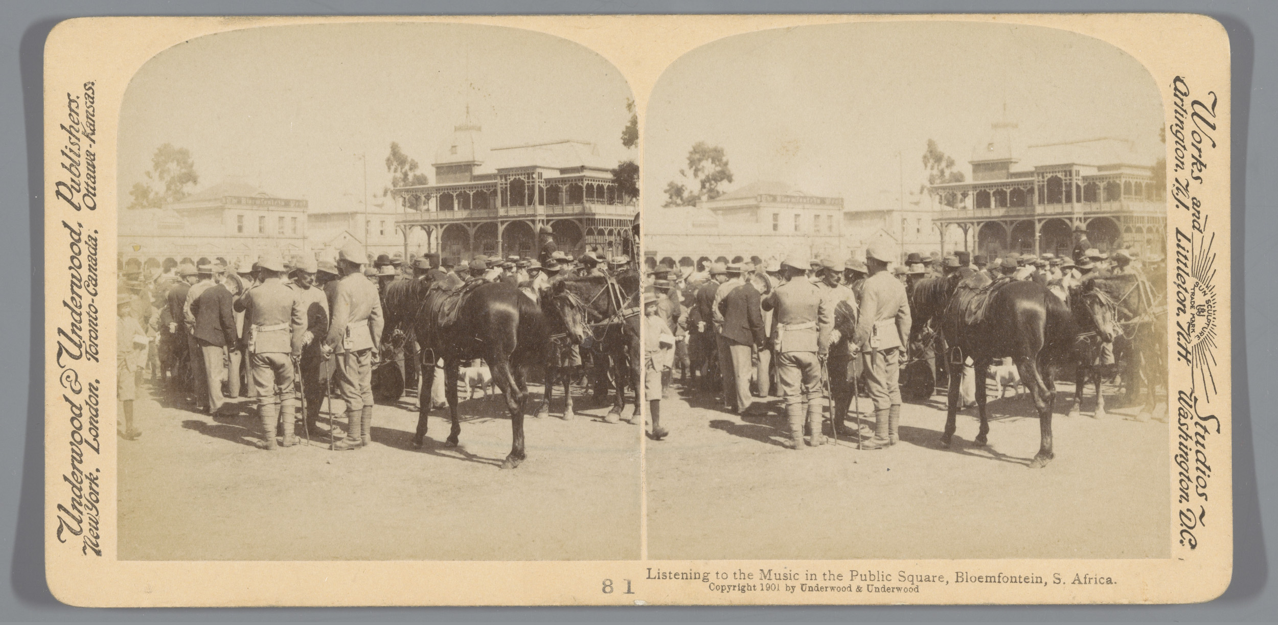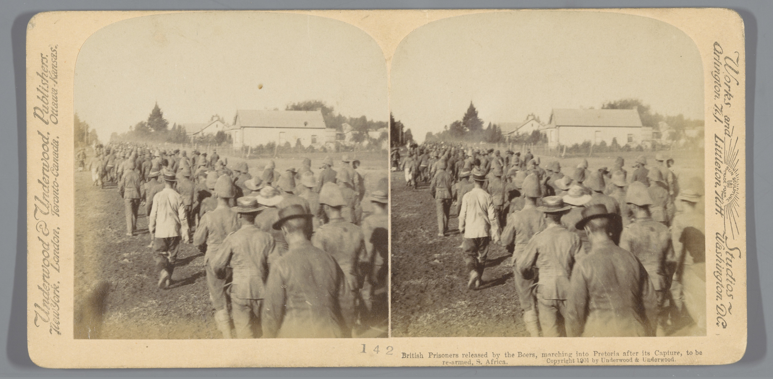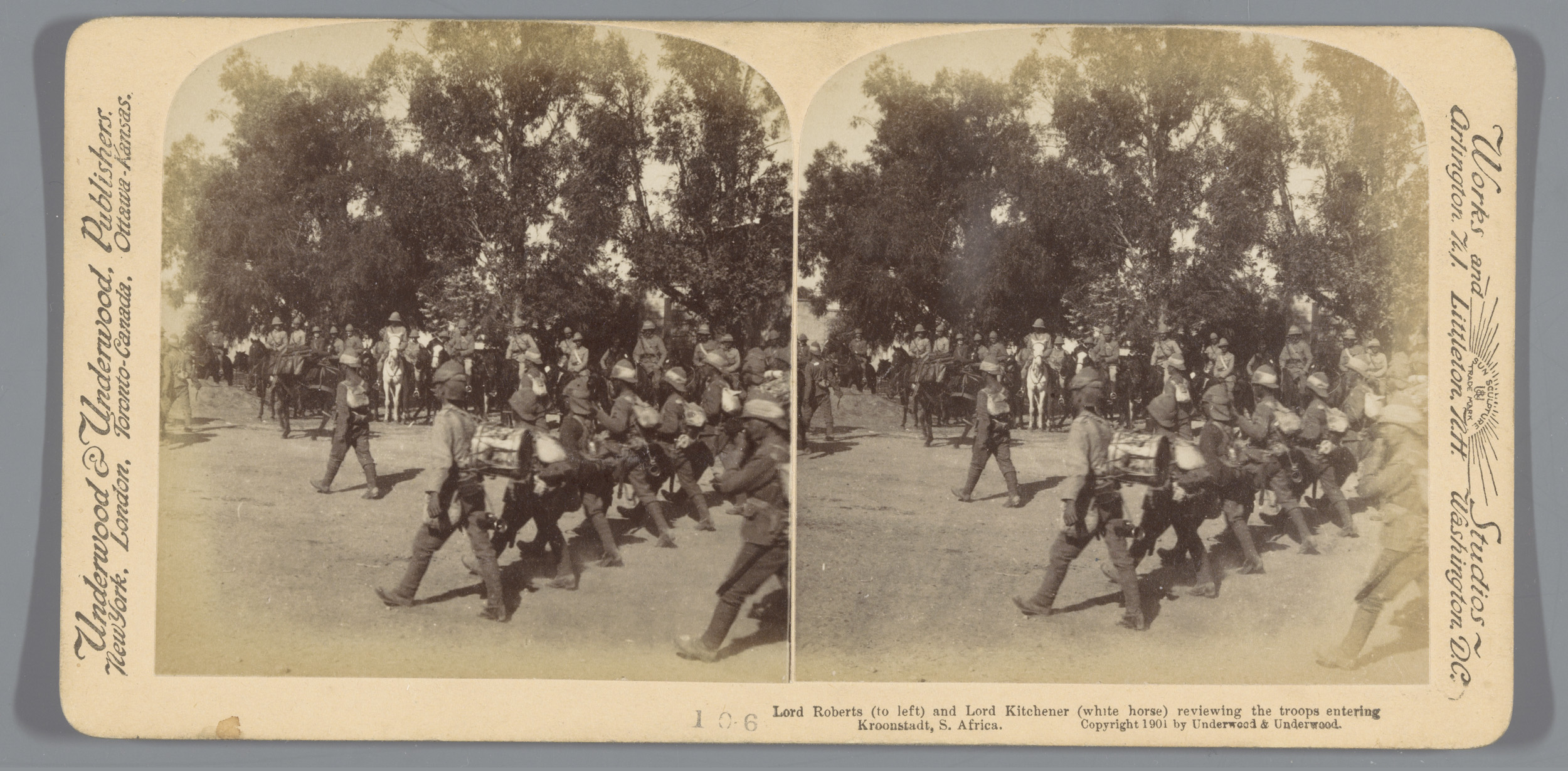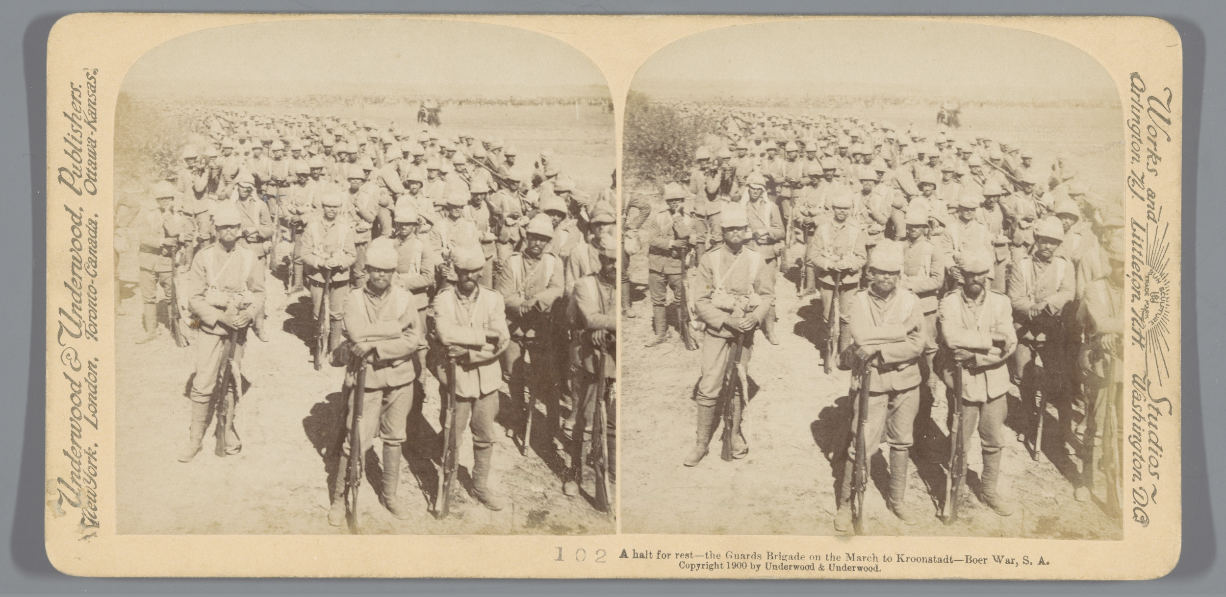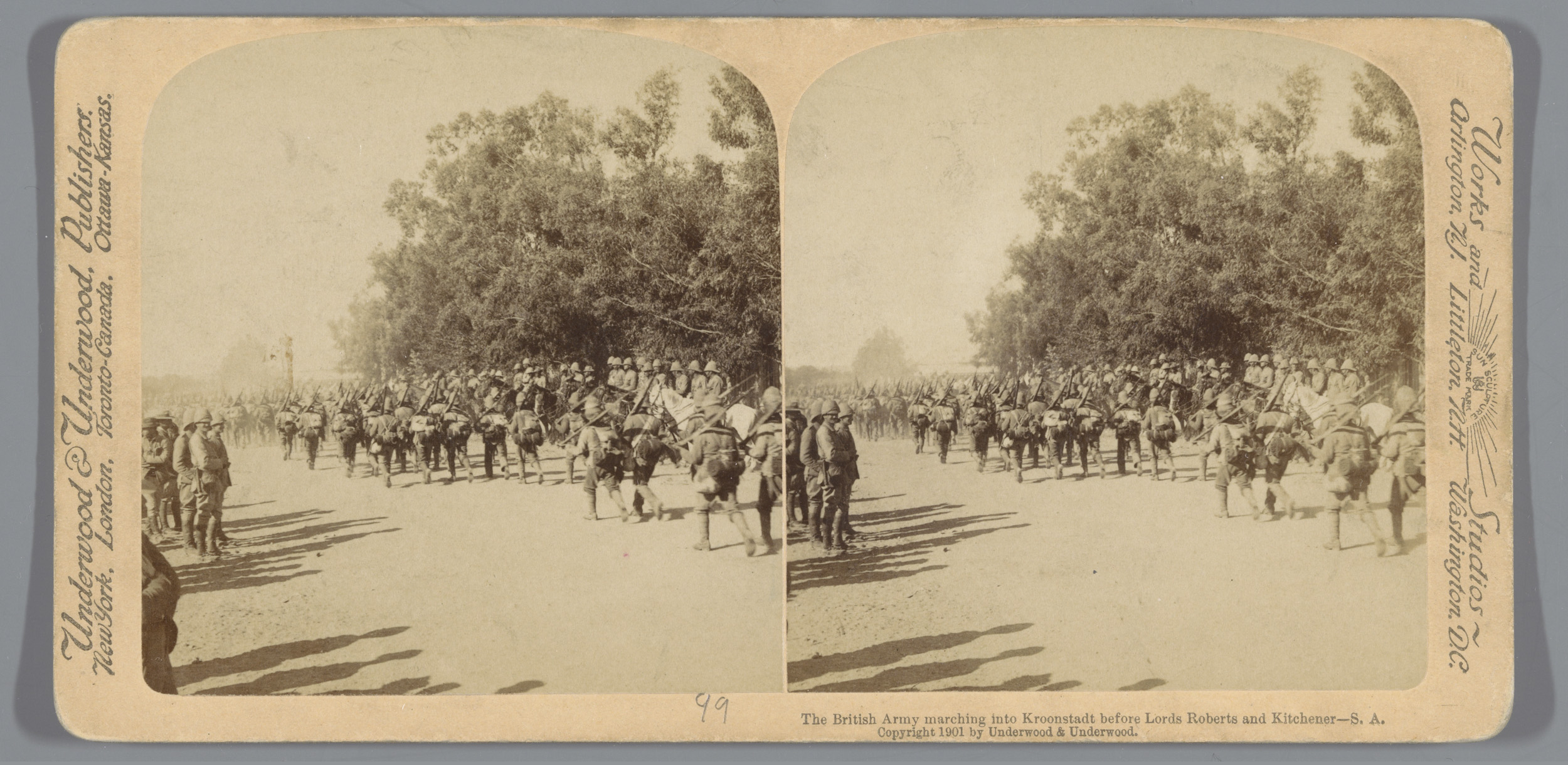 Britse soldaten marcheren naar Kroonstad, Zuid-Afrika