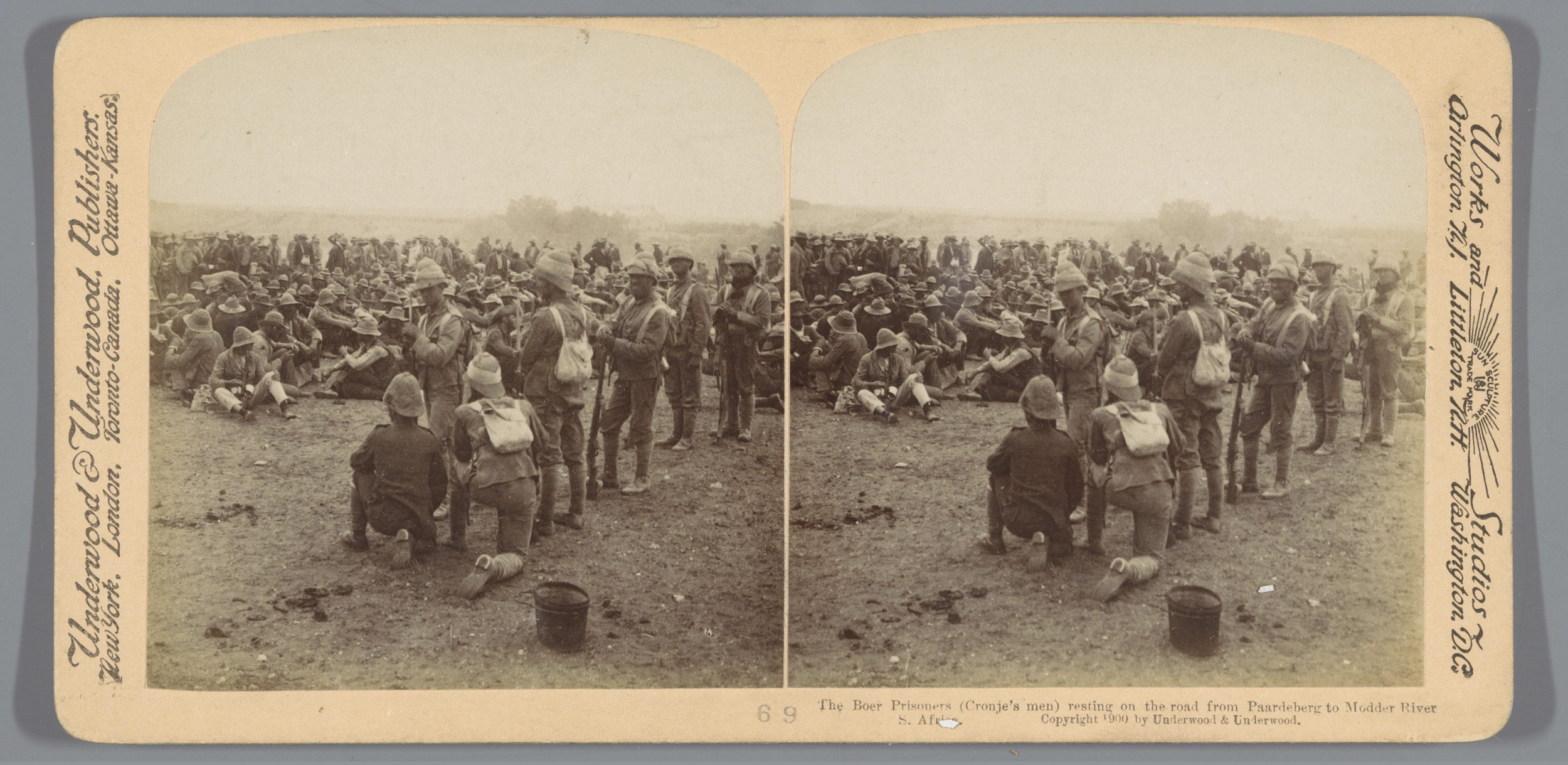 Boerenkrijgsgevangenen rusten uit op de weg tussen P...