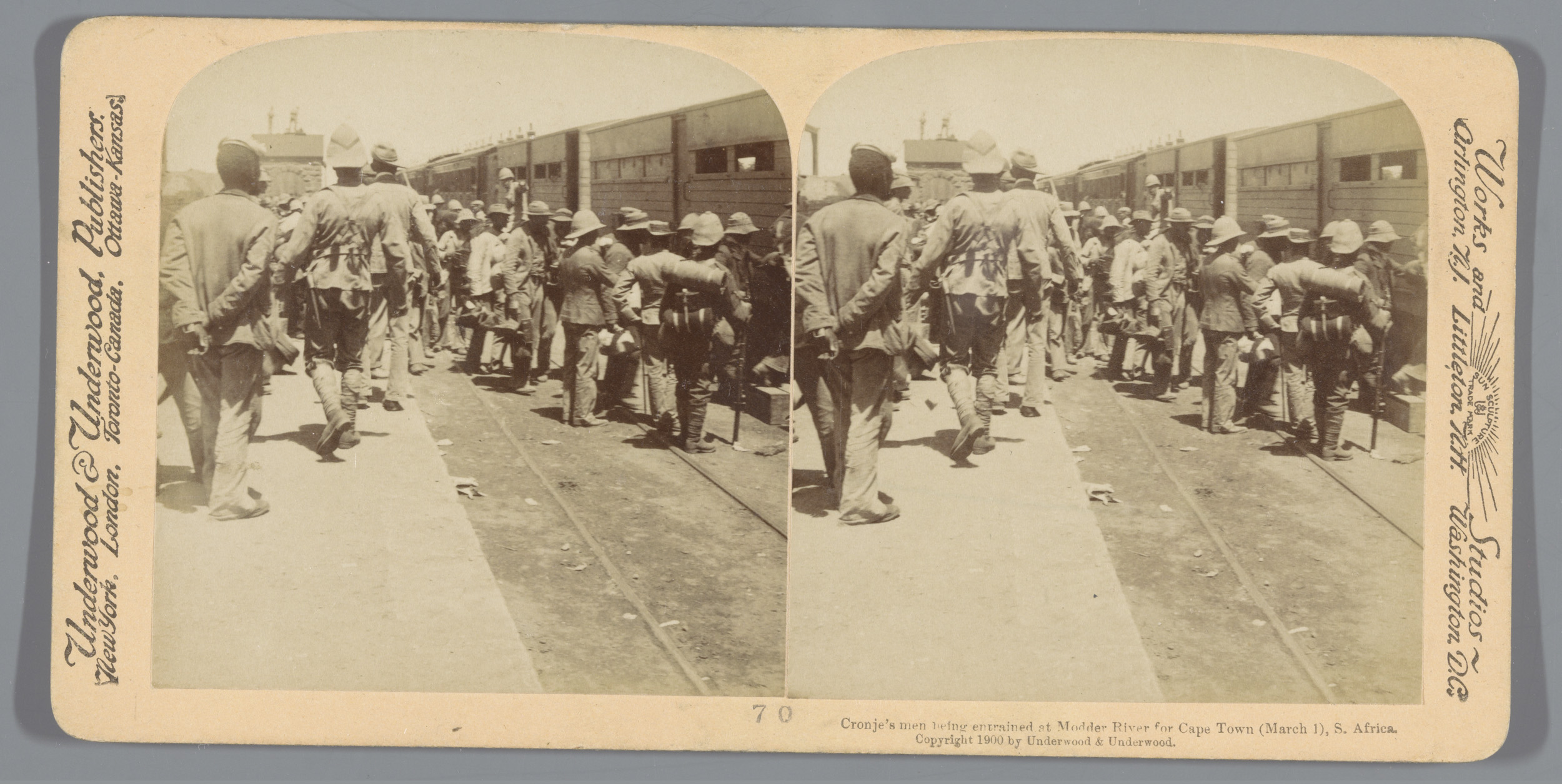 Boerenkrijgsgevangenen worden op de trein naar Kaaps...