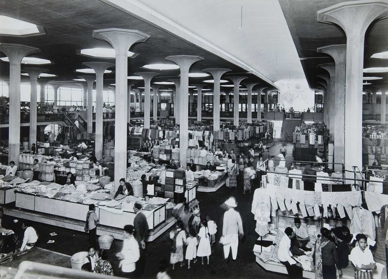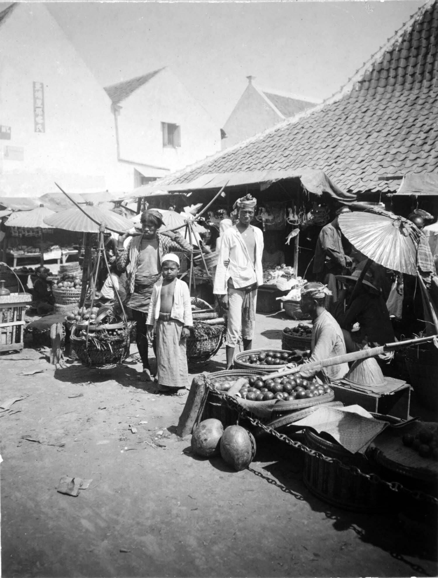 Een Javaanse pasar met fruitstallen en alleen maar m...