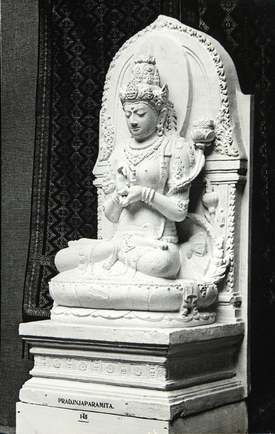 Gipsafgietsel van een beeld van Prajnaparamita op ee...