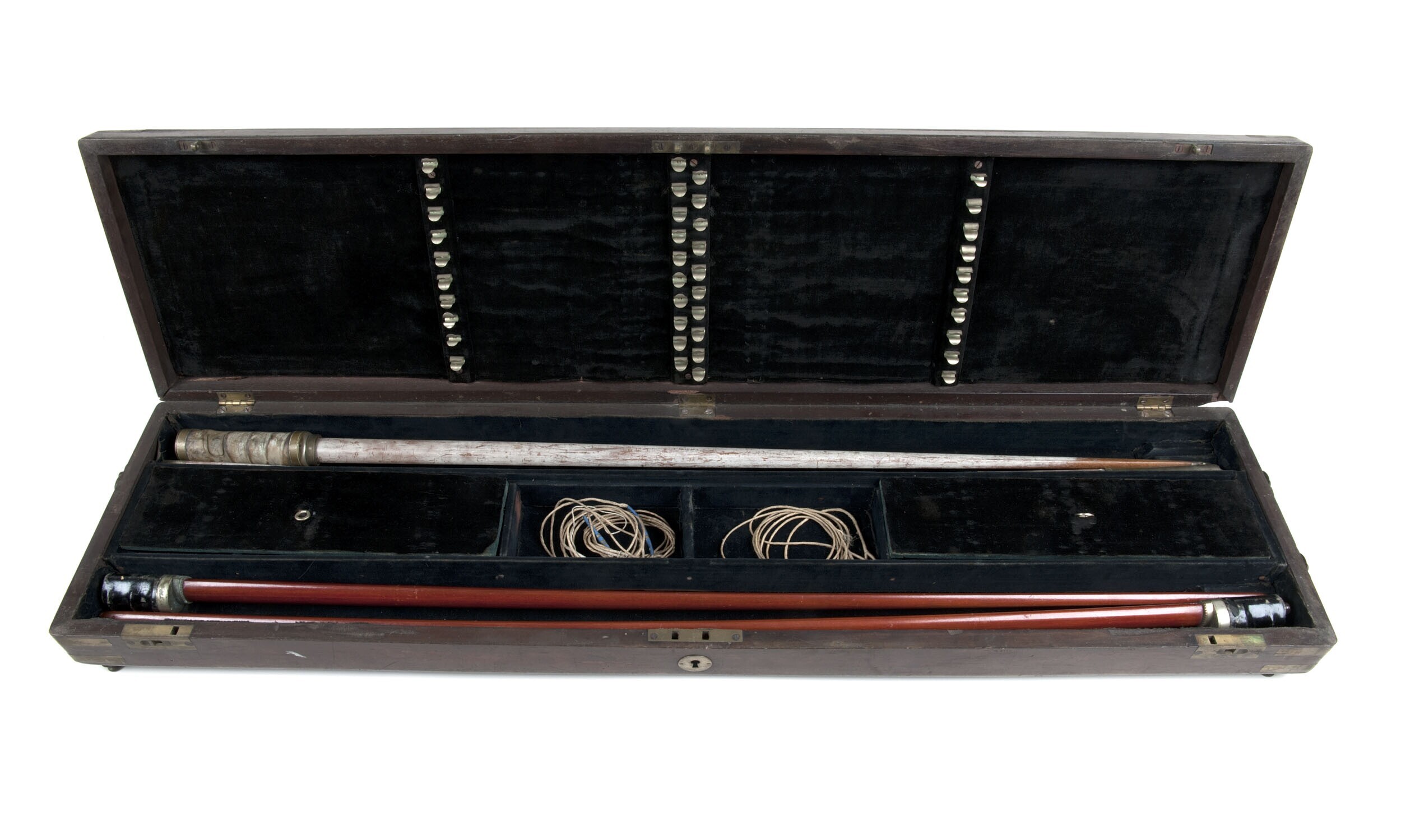 Houten boog voorzien van een handvat bekleed met kat...