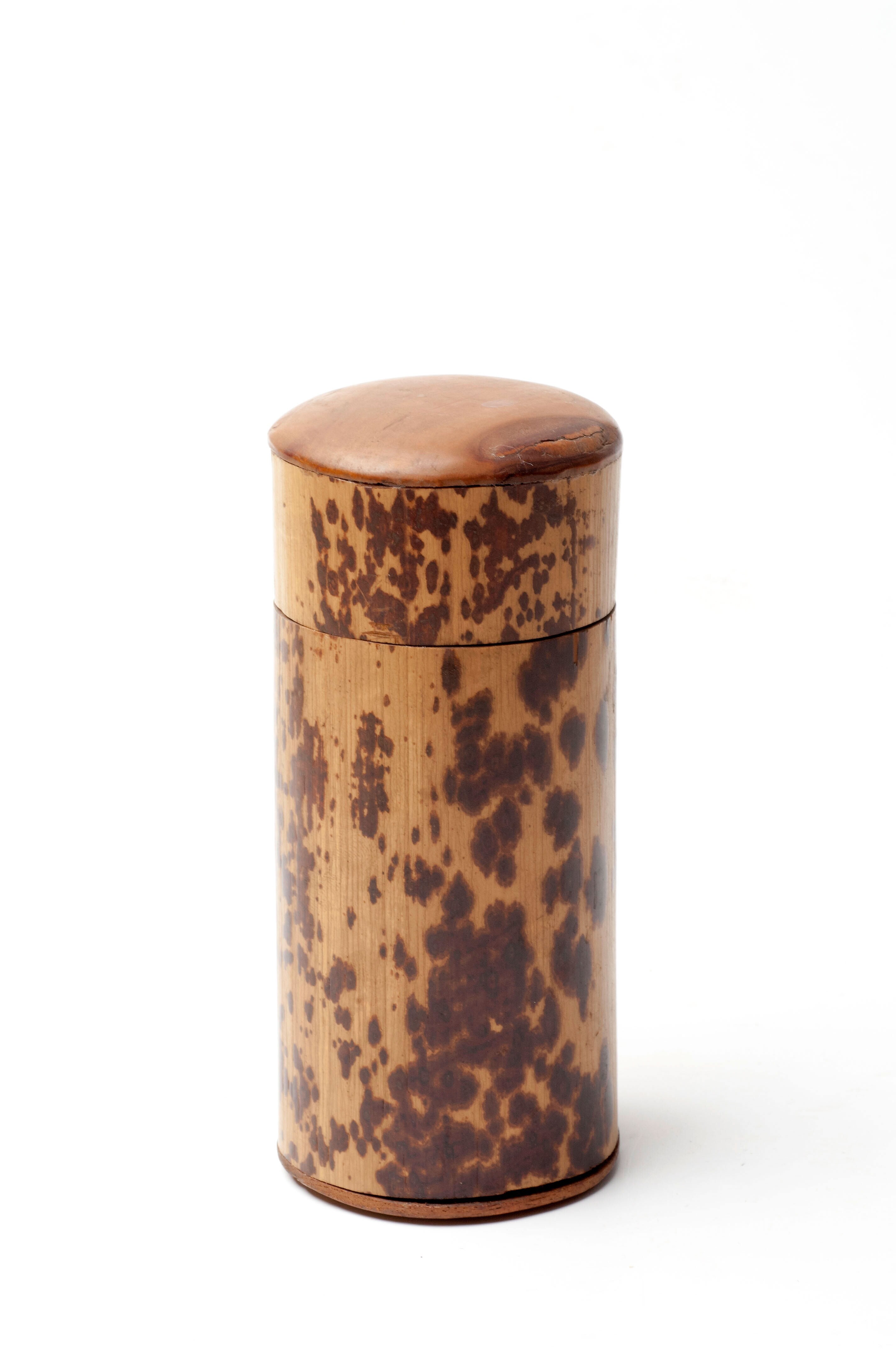 Sigarenkoker van gevlekt bamboe met houten deksel