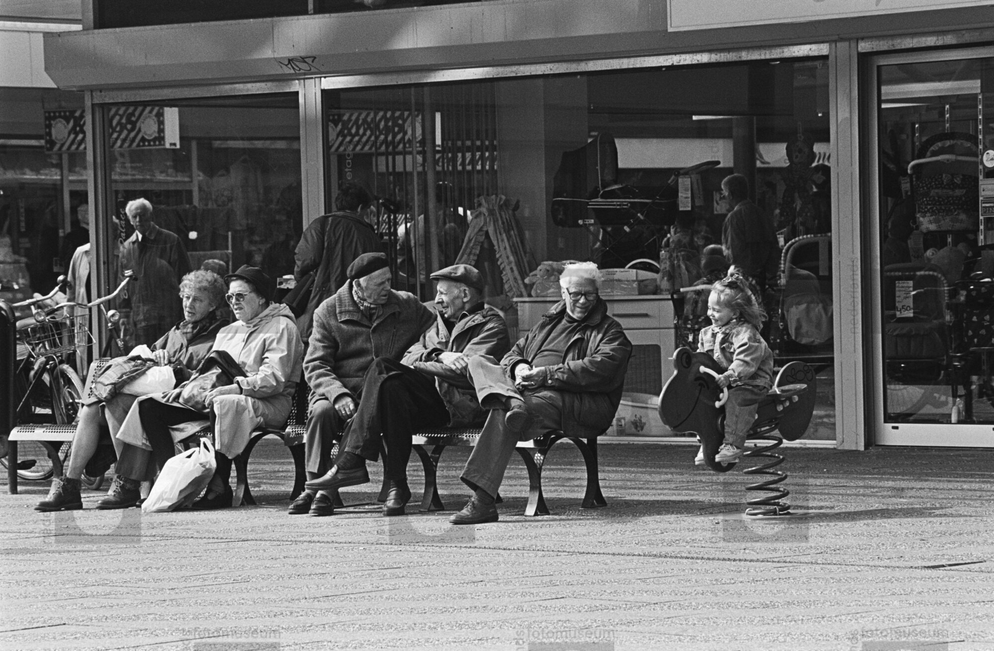 Ouderen op een bankje in het winkelcentrum Buikslote...