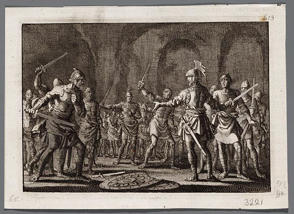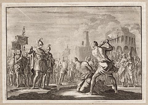 Lupus doodt de vrouw Caesonia van Caligula en hun do...