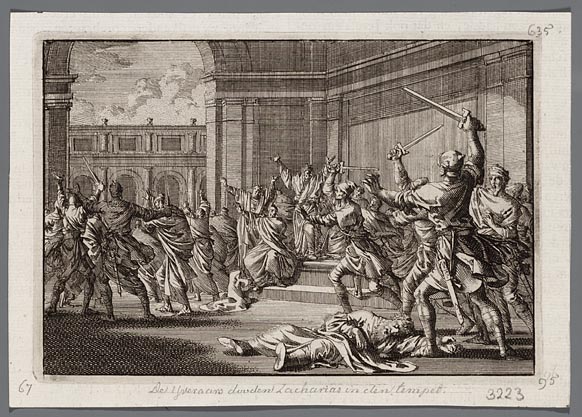 Onias, biddend in de voorhof van de tempel, gestenig...