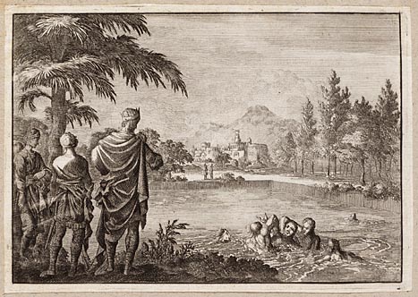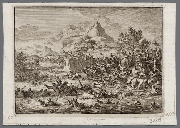 Placidus verslaat de Joden en jaagt ze in de Jordaan