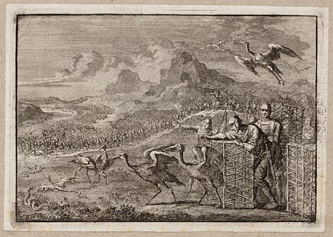 Mozes verjaagt de slangen in Egypte door ibissen los...