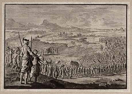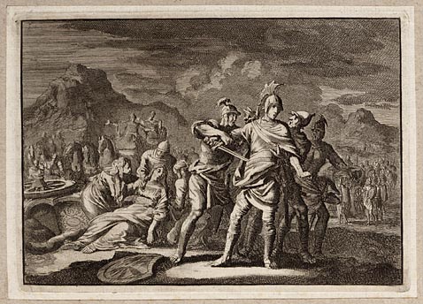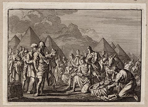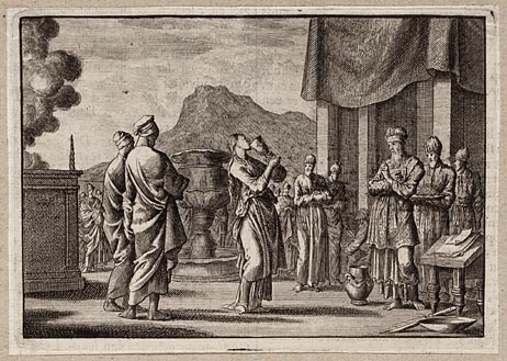 Alexander de Grote knielt voor de hogepriester Jaddus