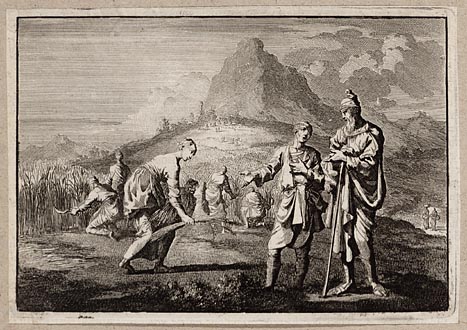 Boäz ondervraagt zijn opzichter over Ruth