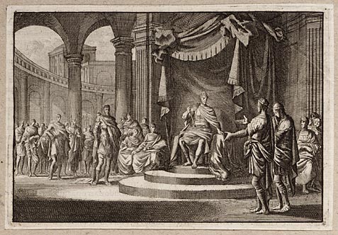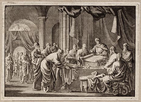 Zerubbabel, vorst der Joden, voor de op zijn troon g...