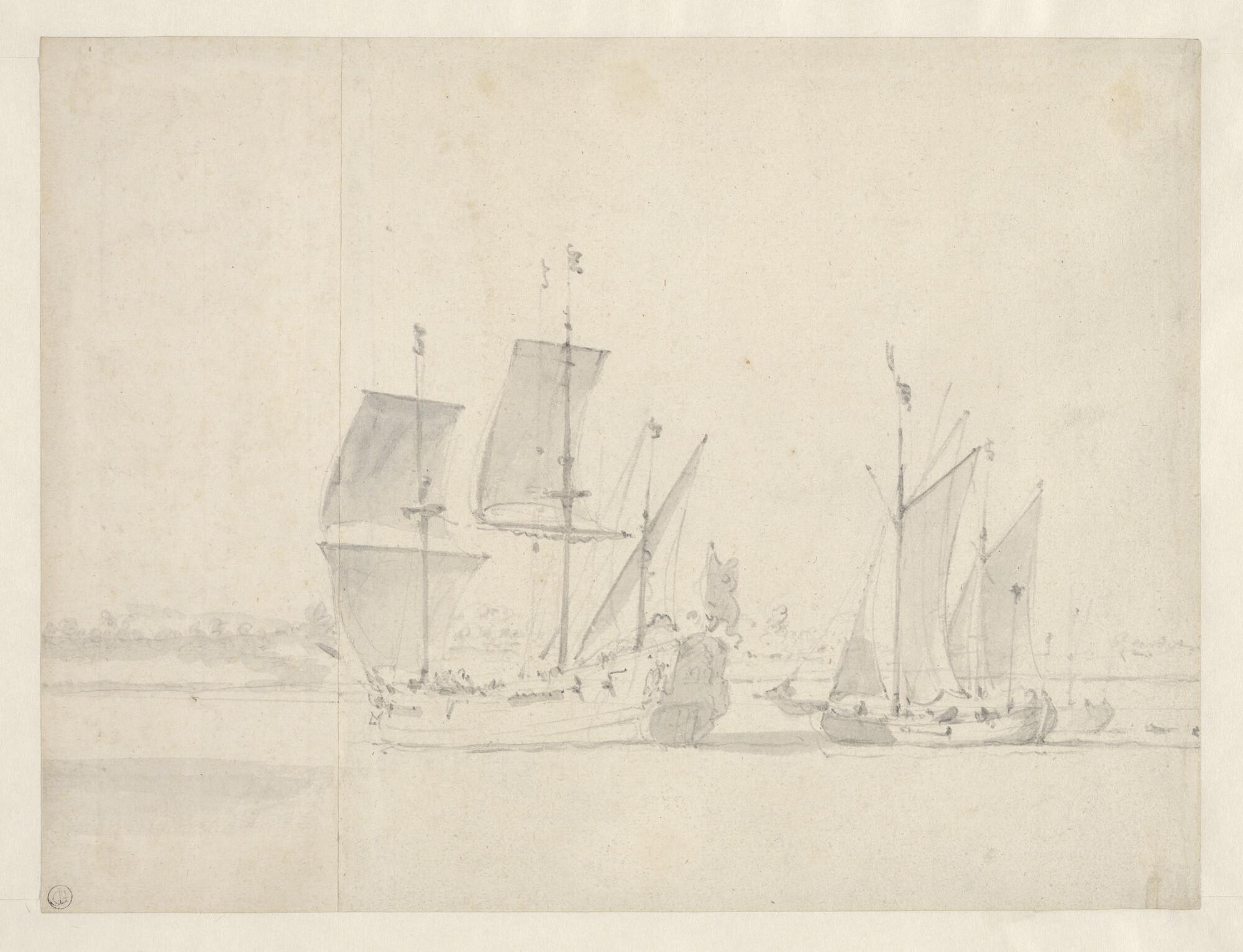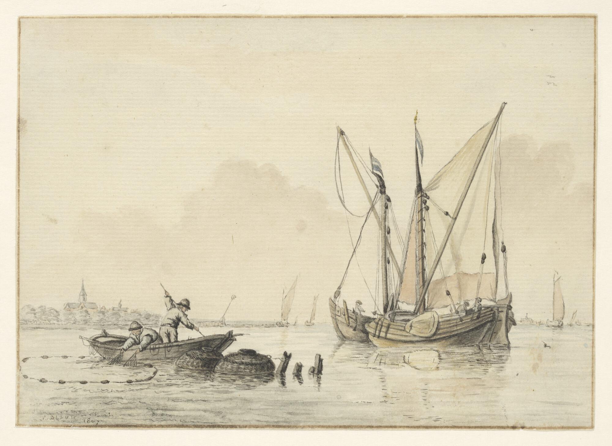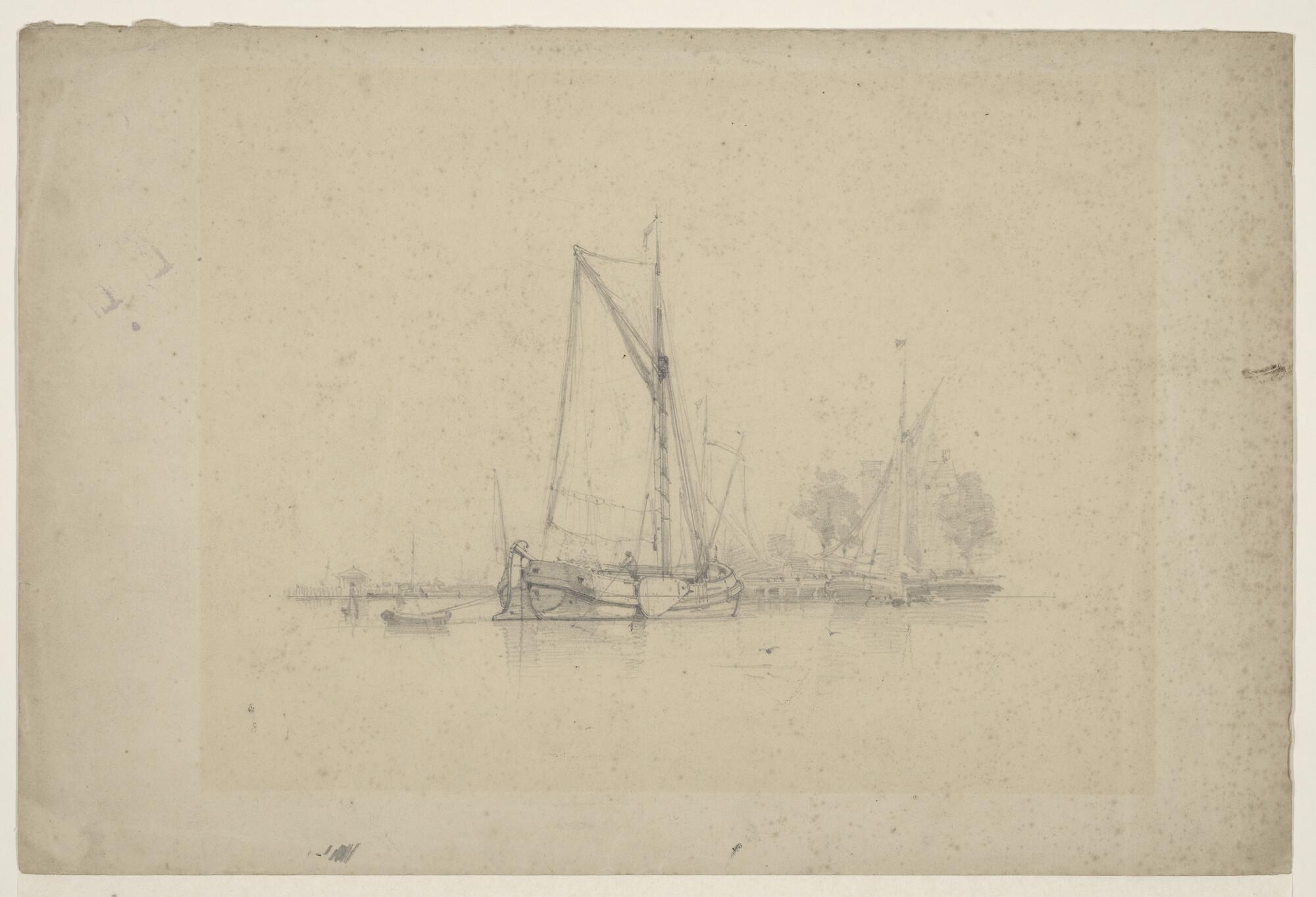 Twee binnenschepen en een roeiboot op de Haarlemmermeer