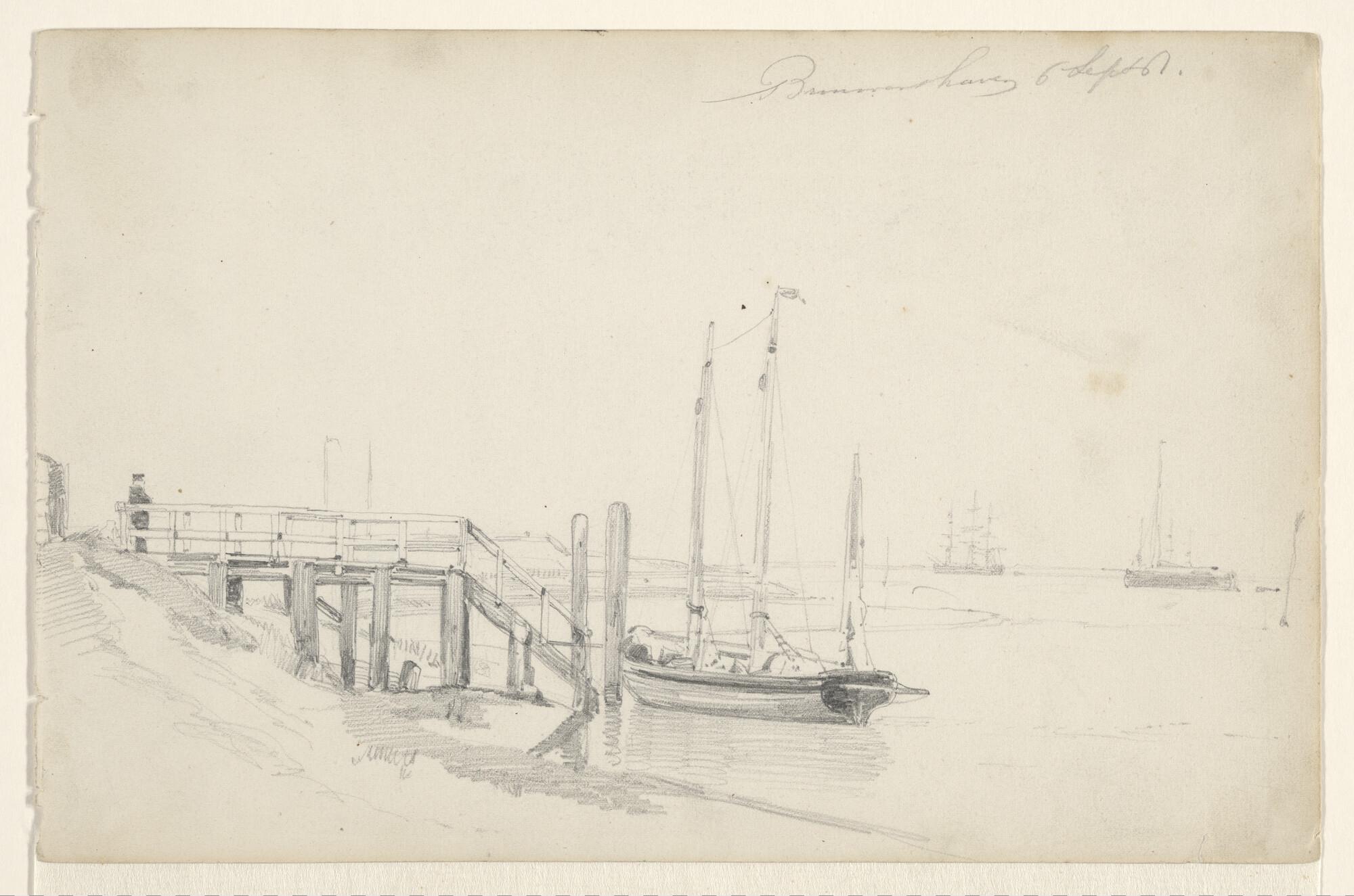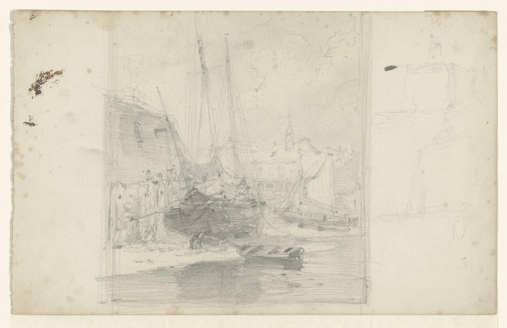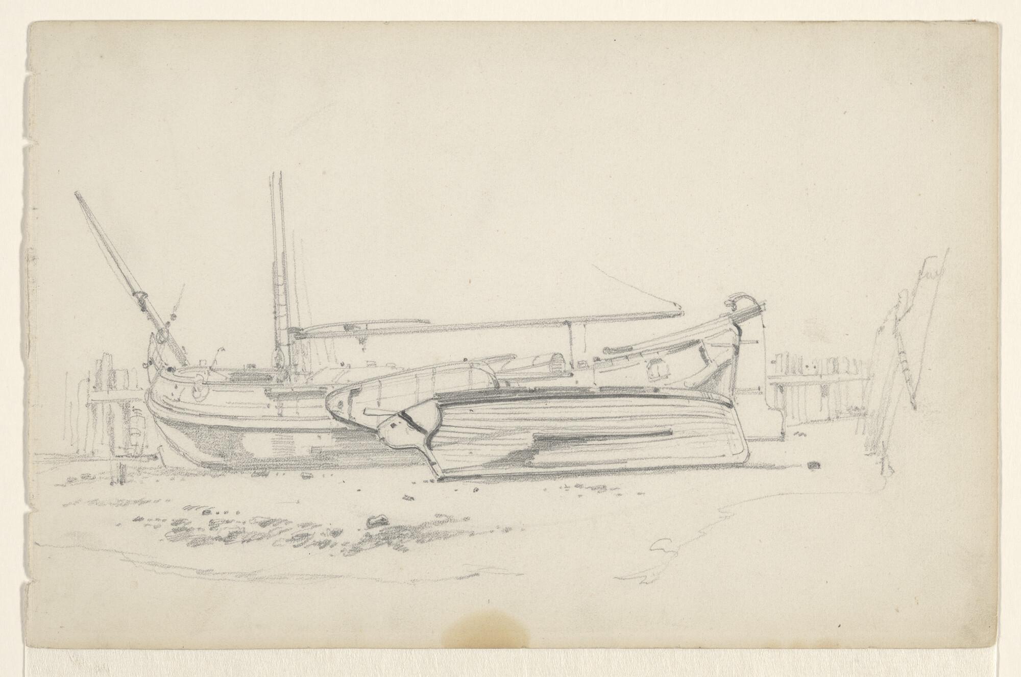 Een paviljoenpoon en een sloep droogvallend in een h...