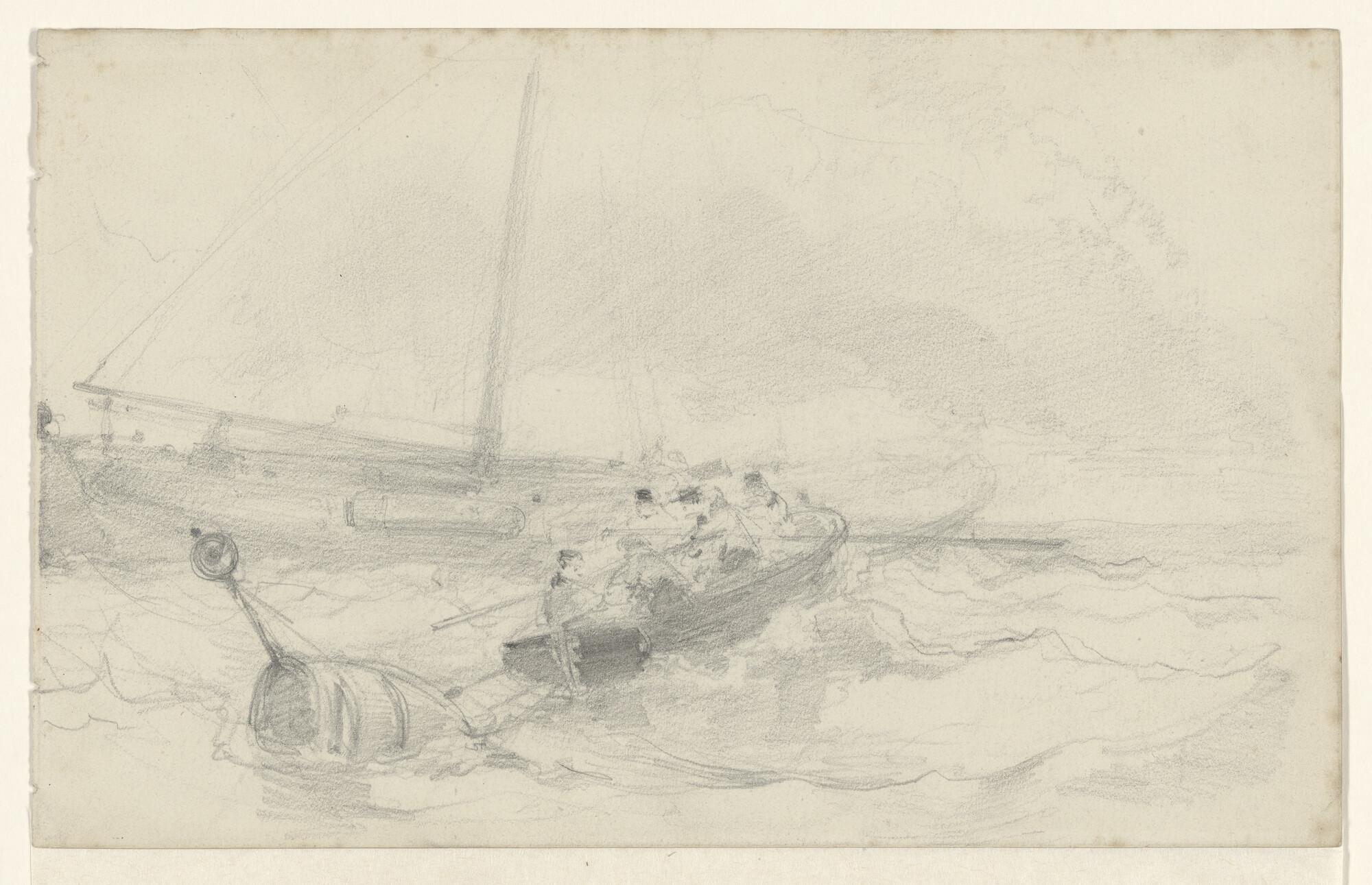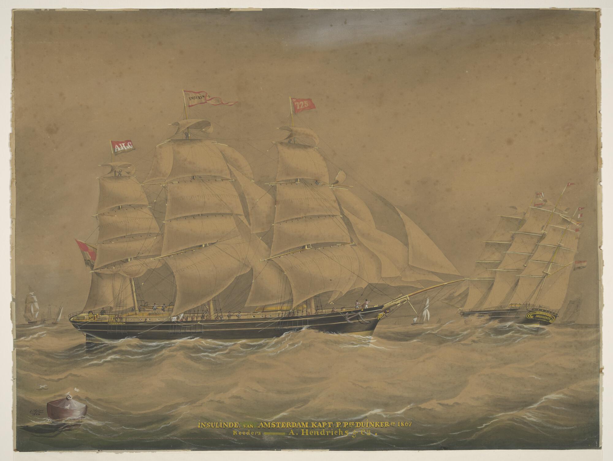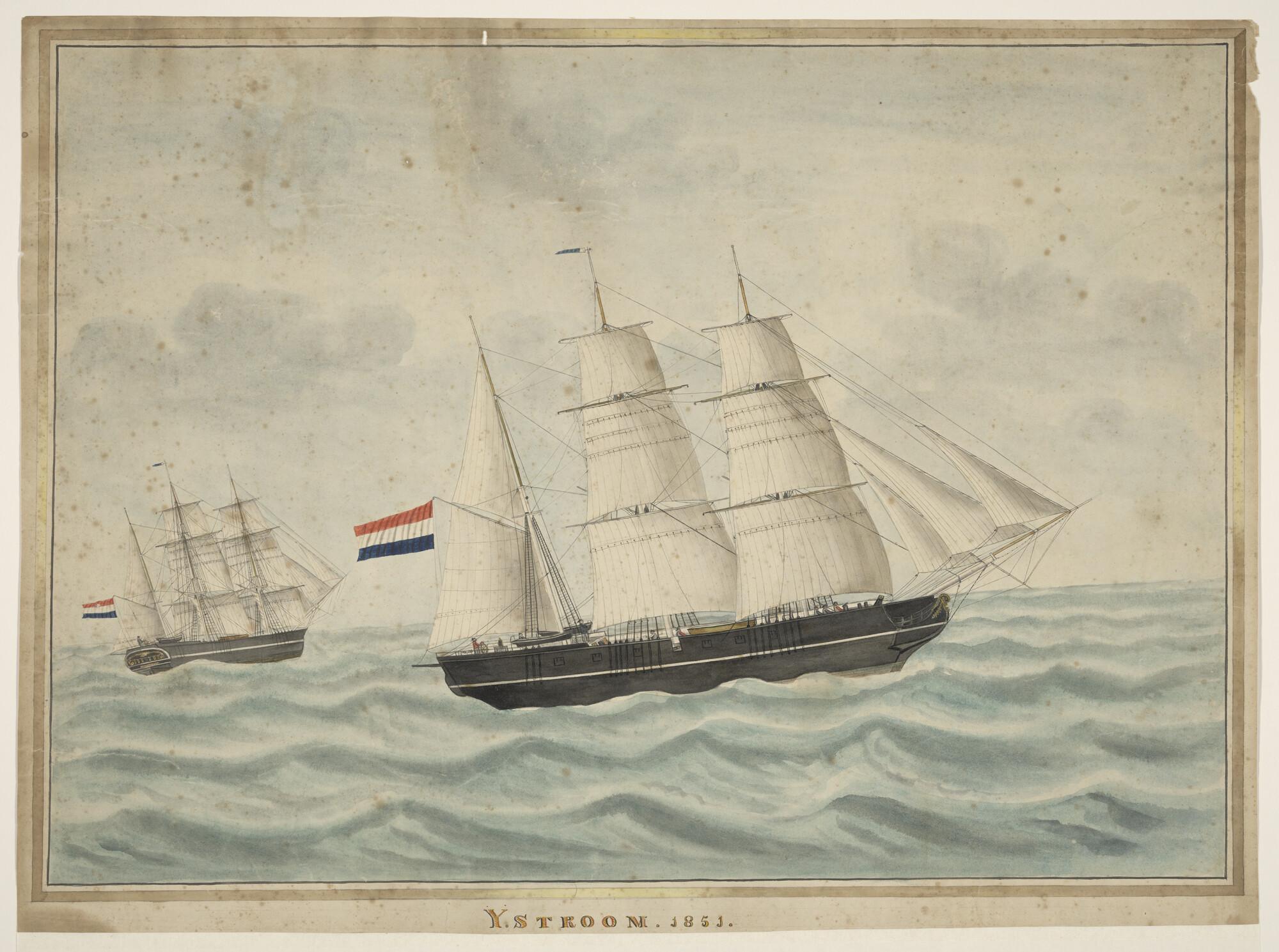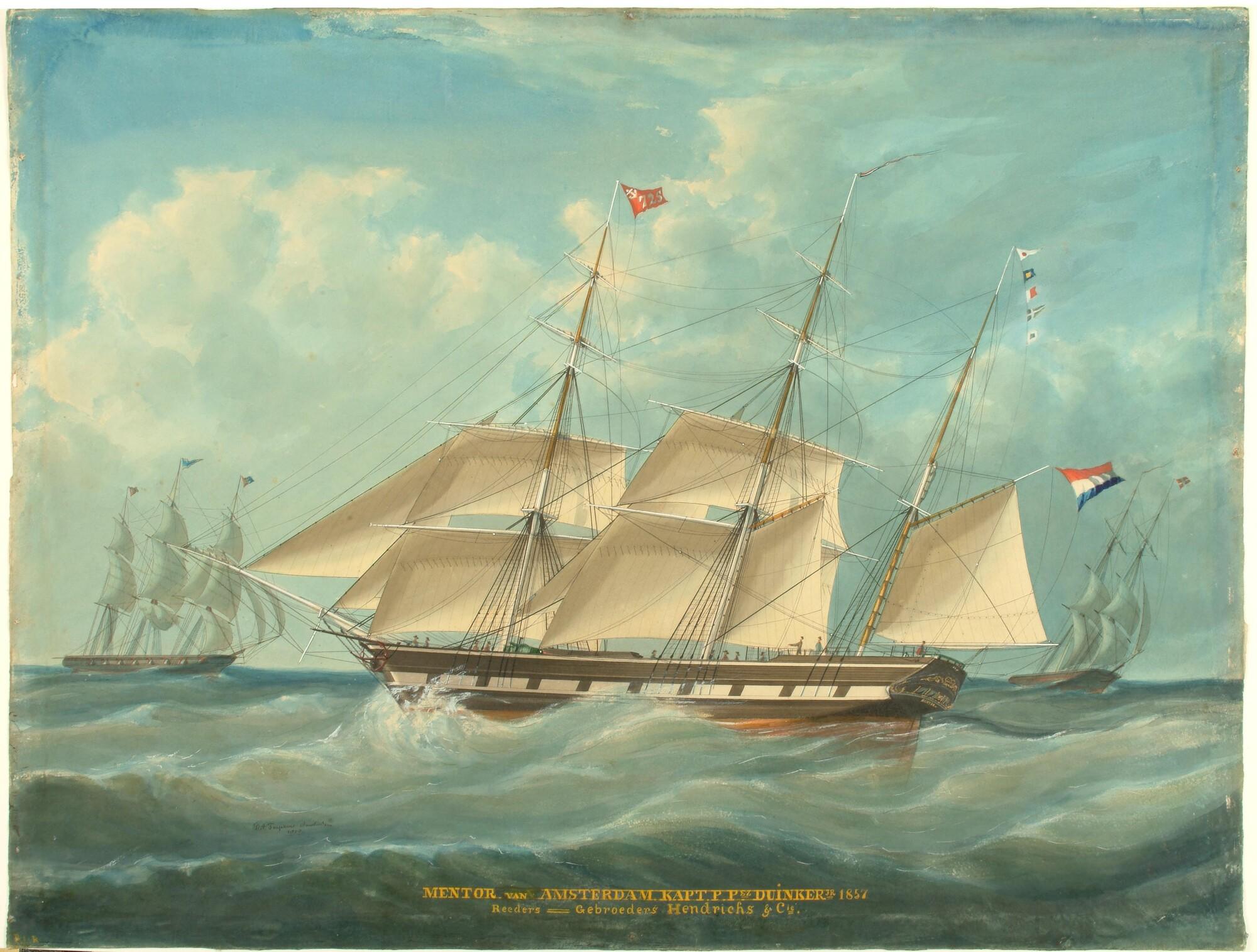 Het fregatschip Jantje Eikema met op de achtergrond ...