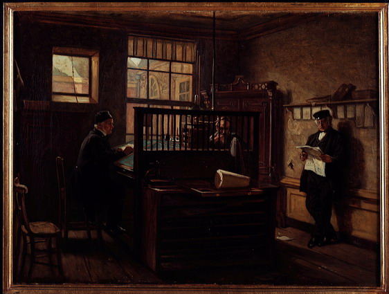 Interieur van het kantoor der suikerraffinaderij Spa...
