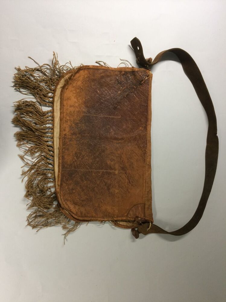 Leren weitas met geknoopt macrame net aan de buitenk...