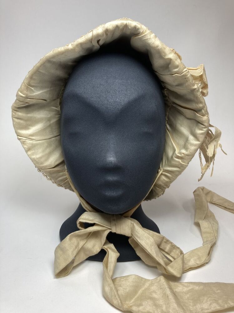 Luifelhoedje voor weesmeisje met zijden strik en ran...