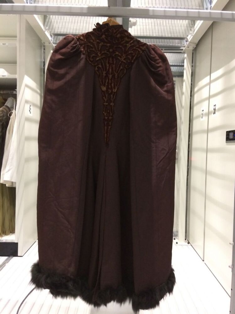 Slanke lange avondcape van donkerbruine ribszijde me...