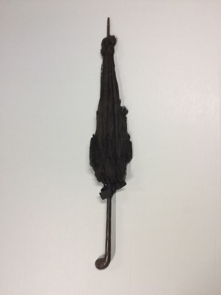 Parasol en hoes. Zwart zijden parasol met concentris...