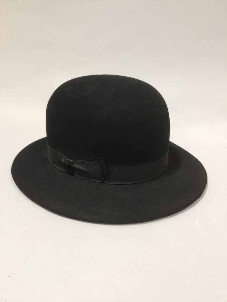 Dames paardrijhoed van zwart vilt, bolhoed met vlakk...