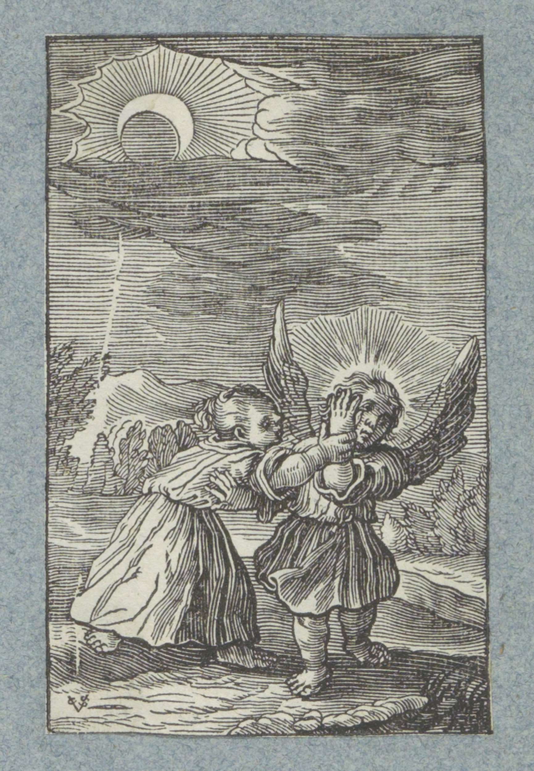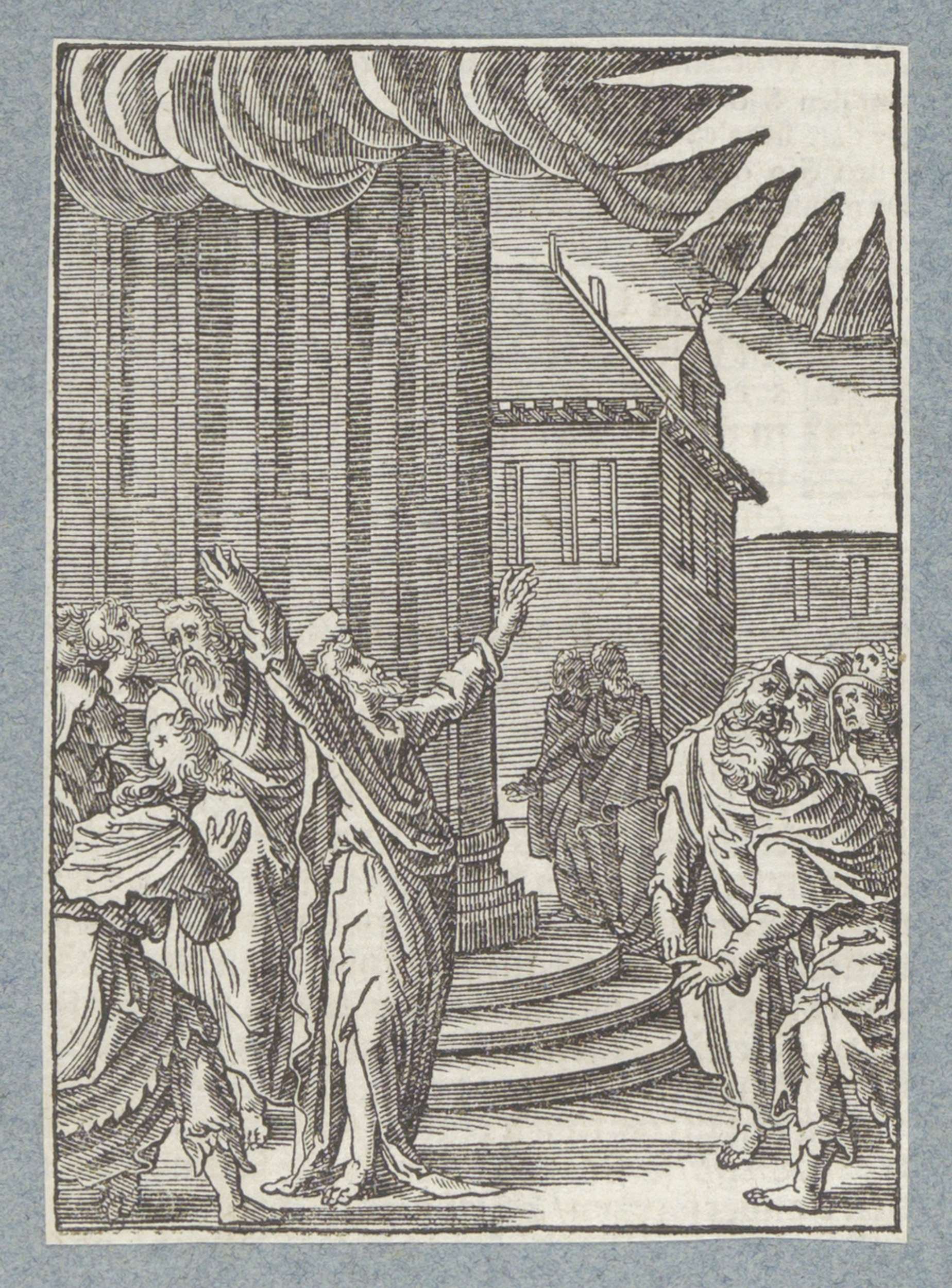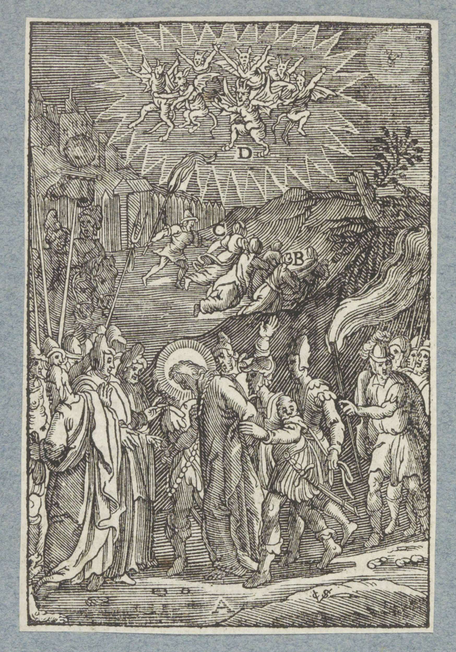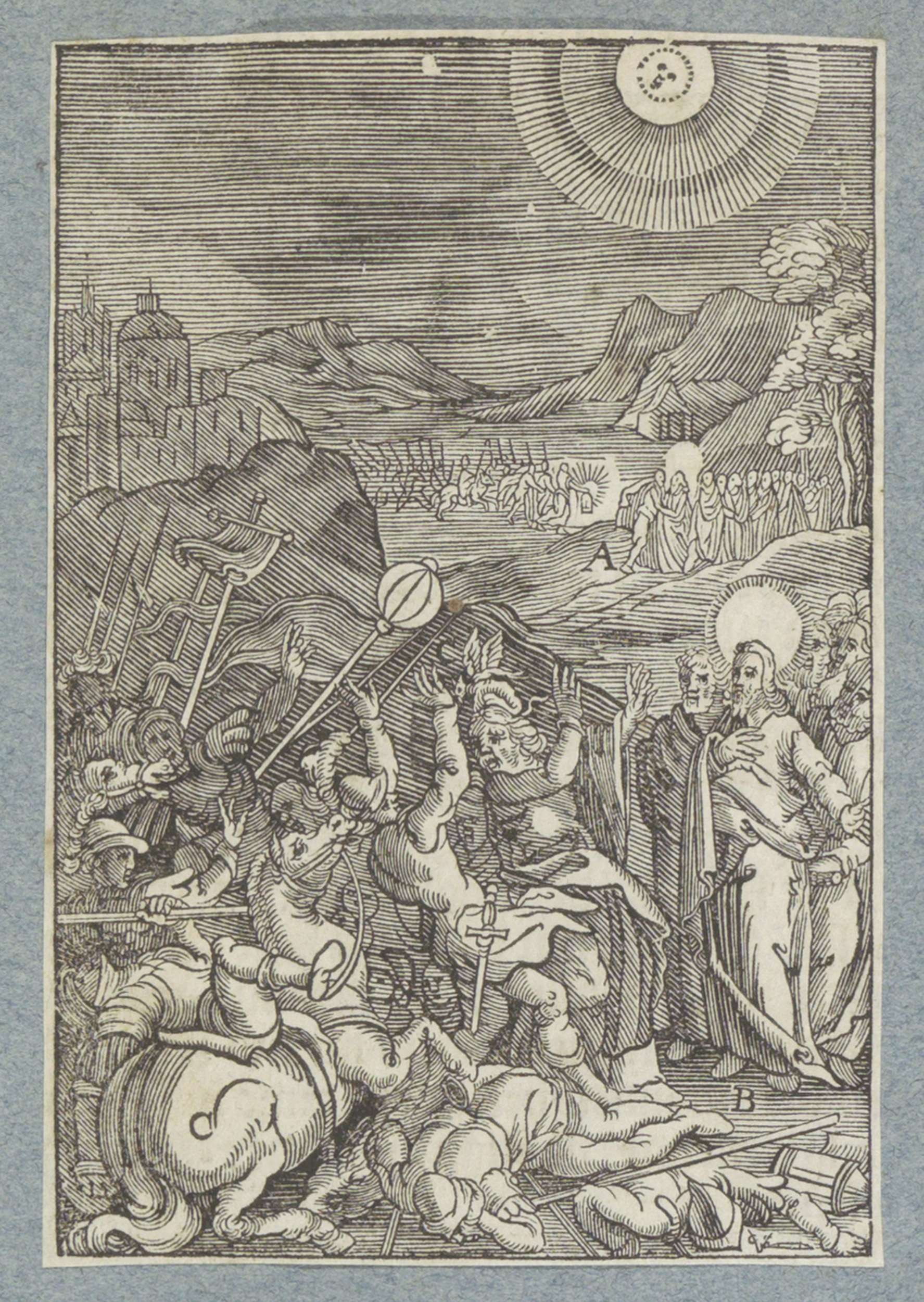 Ruiters met lansen verschijnen in de hemel boven Jer...