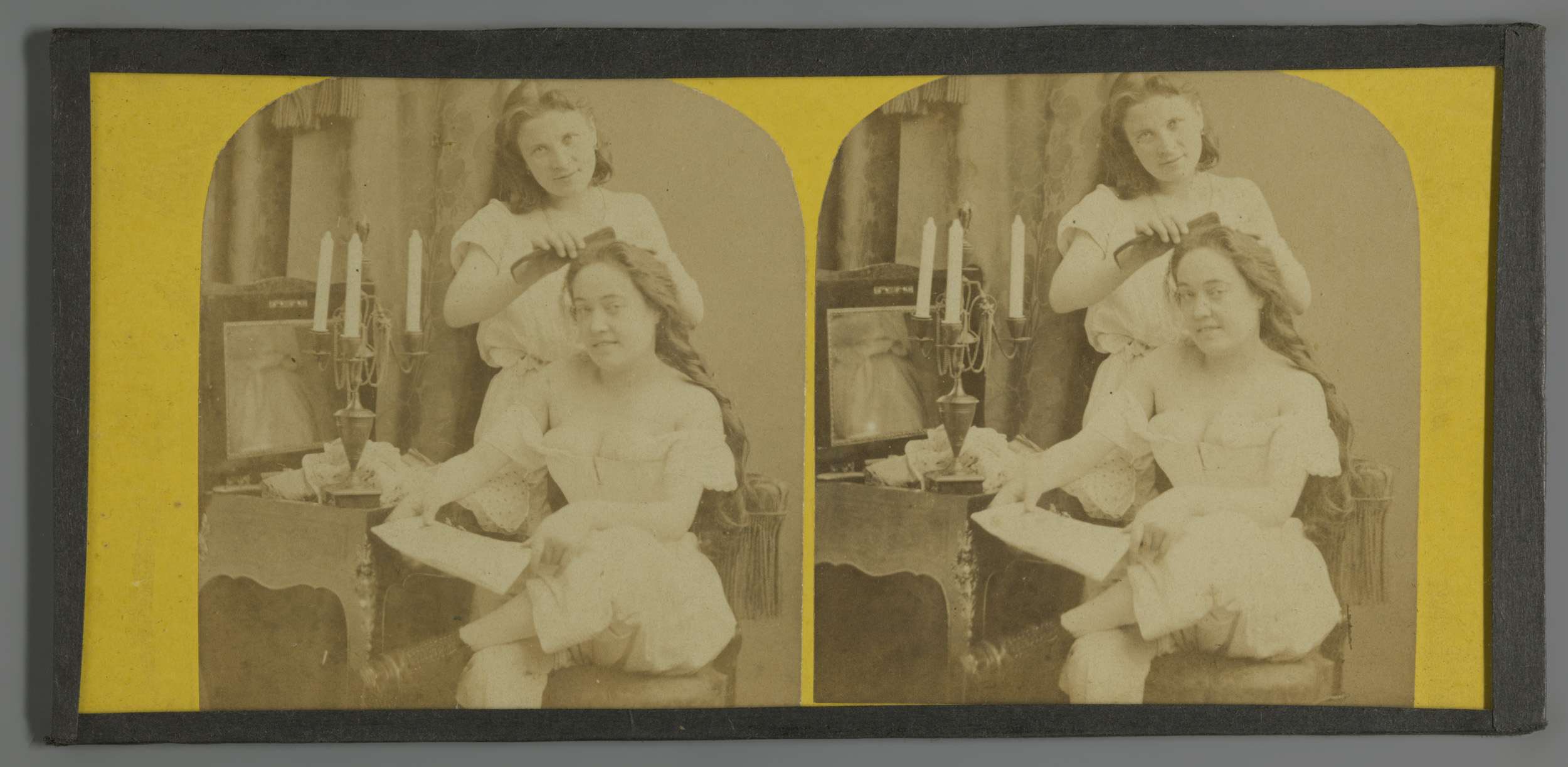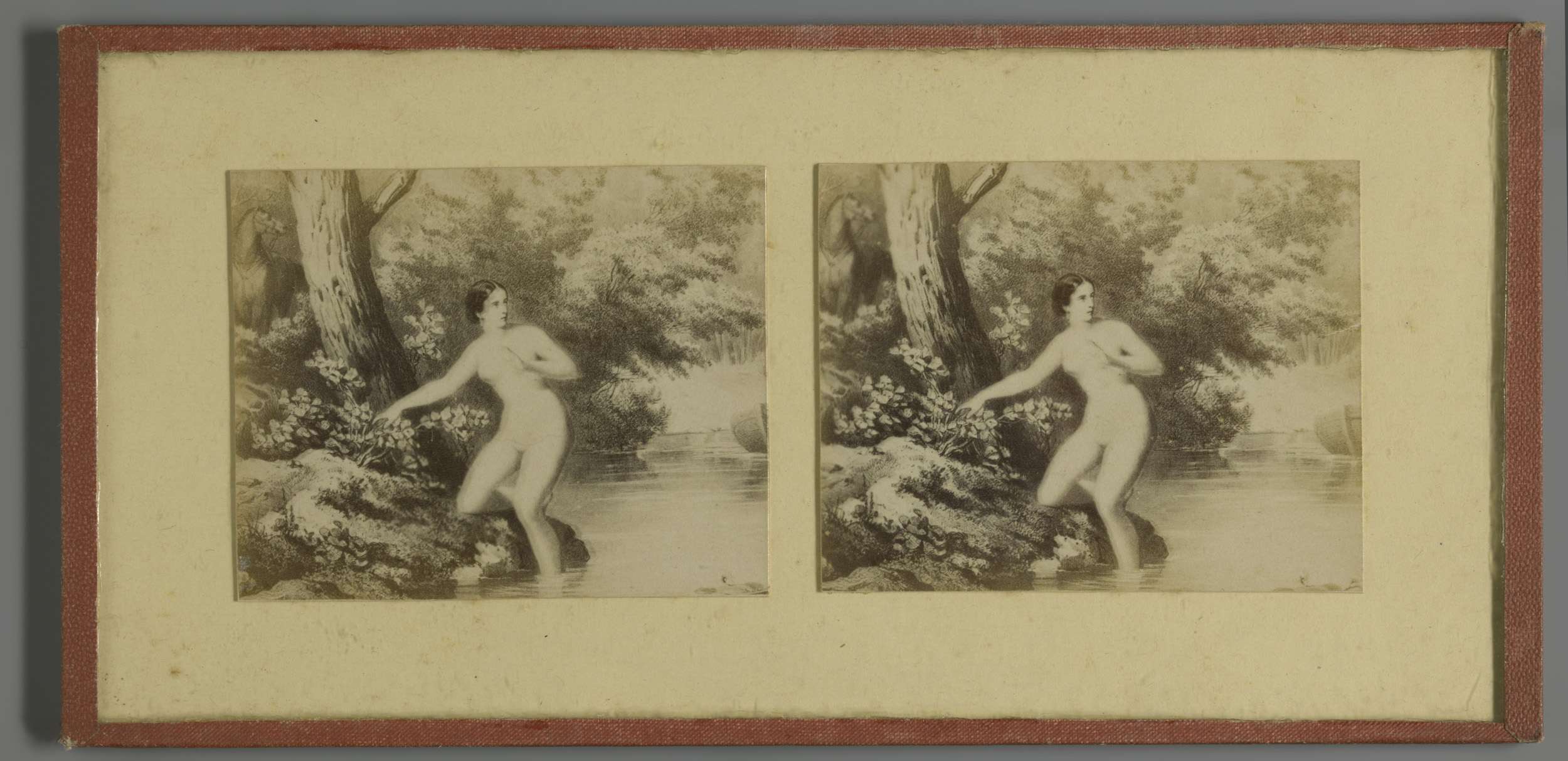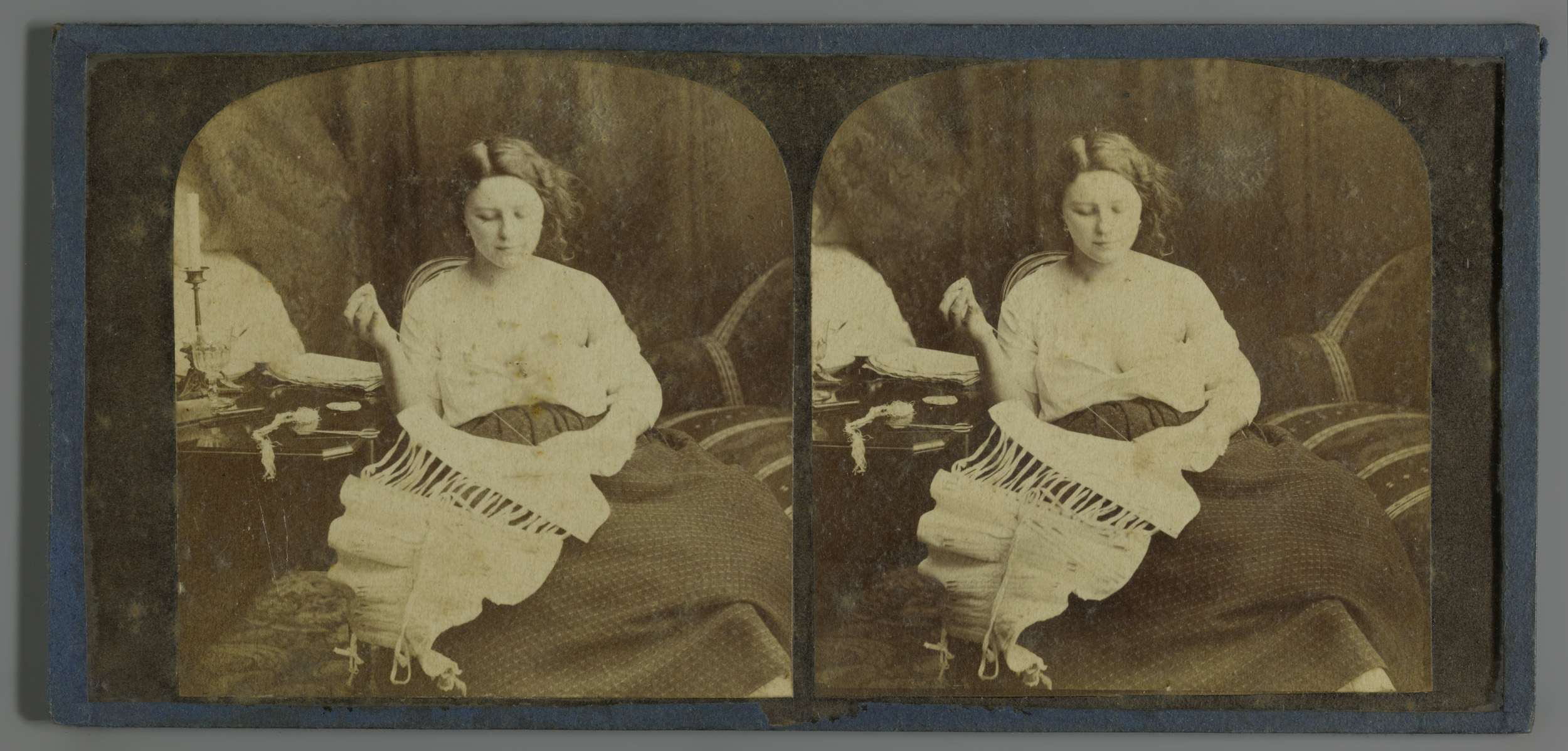 Handwerkende vrouw met half ontbloot bovenlichaam