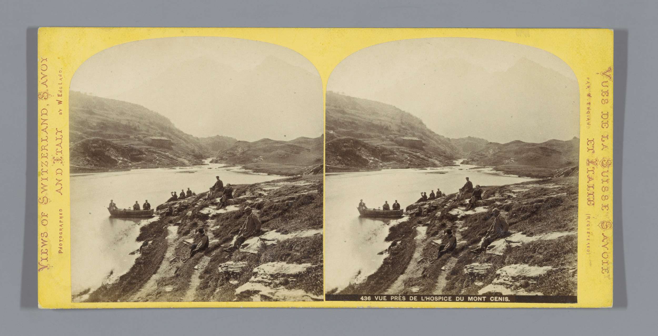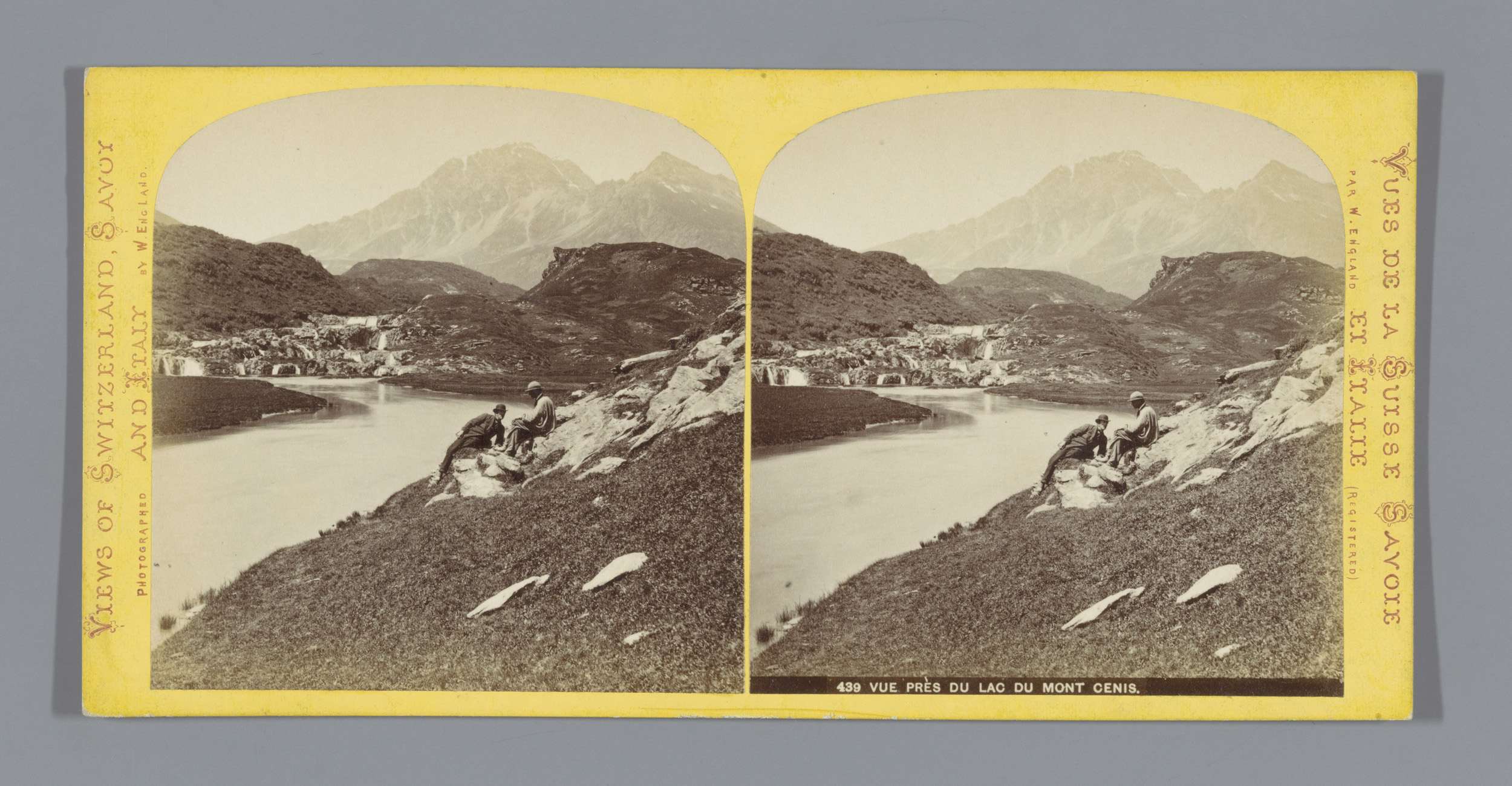 Gezicht op het Lac du Mont-Cenis met bezoekers
