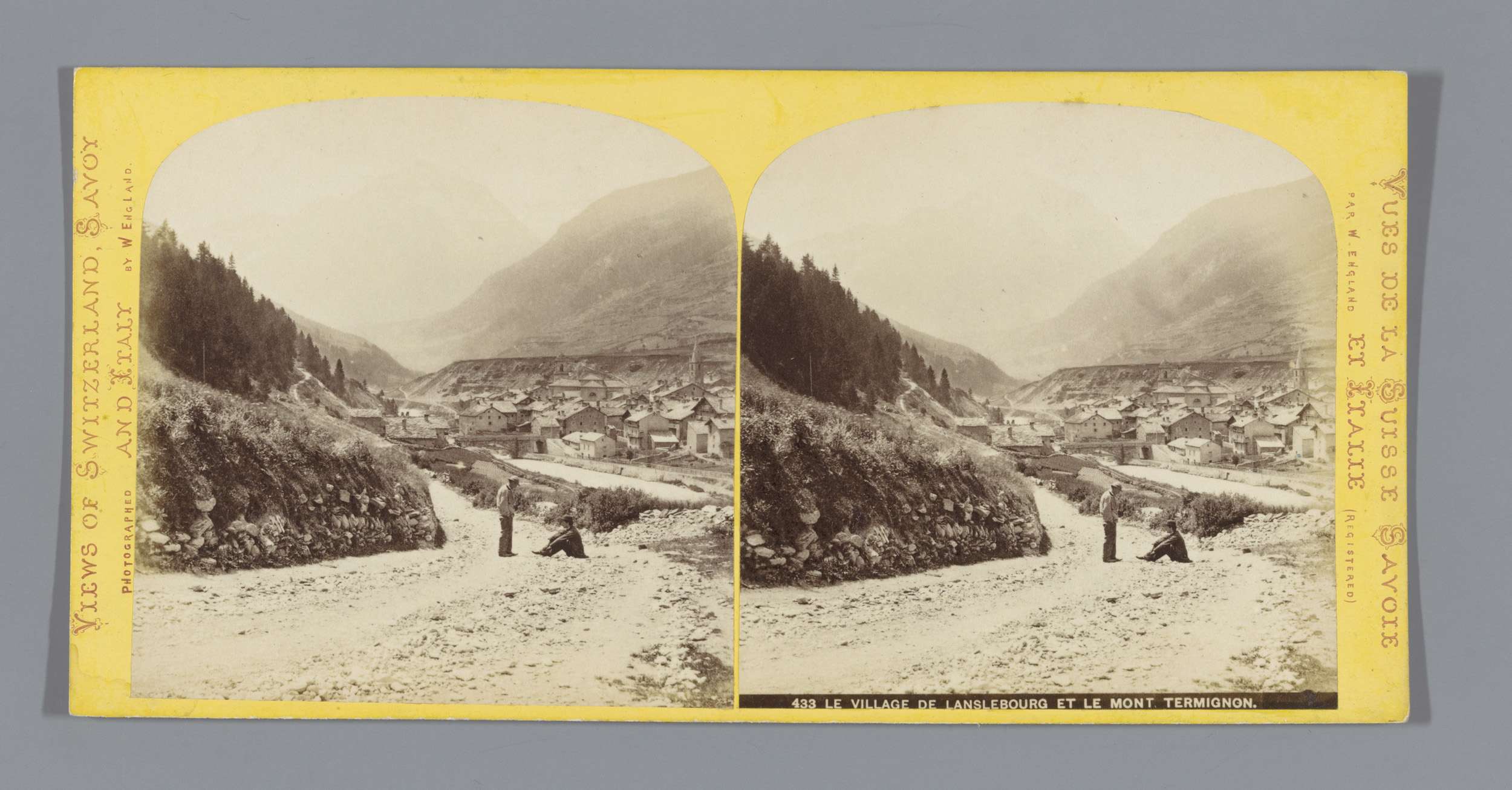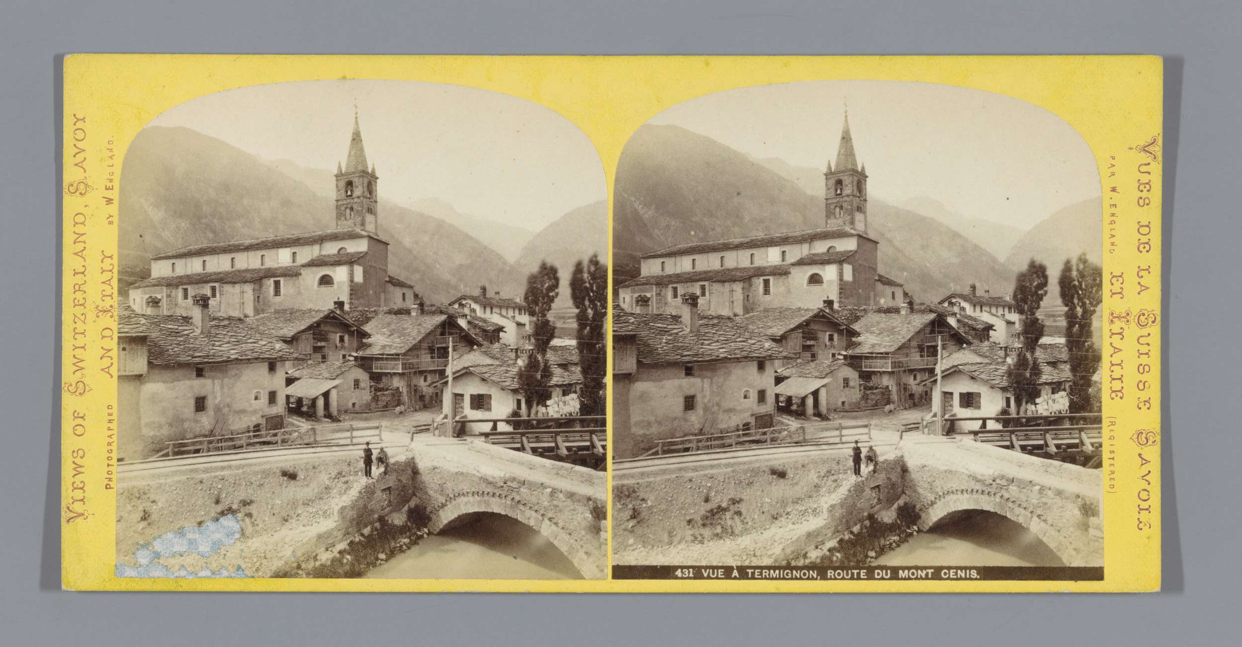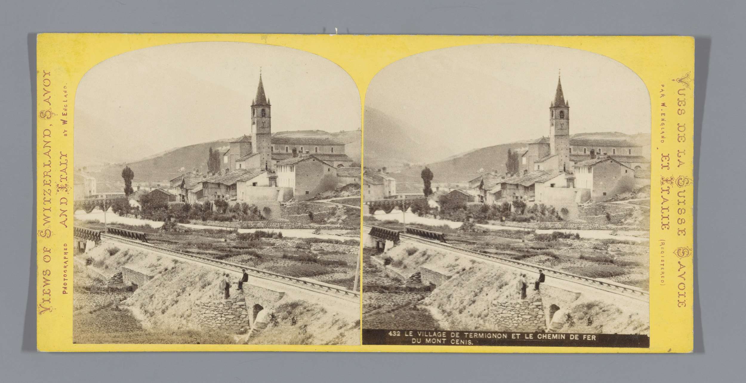 Gezicht op Termignon en de spoorlijn die door de tun...