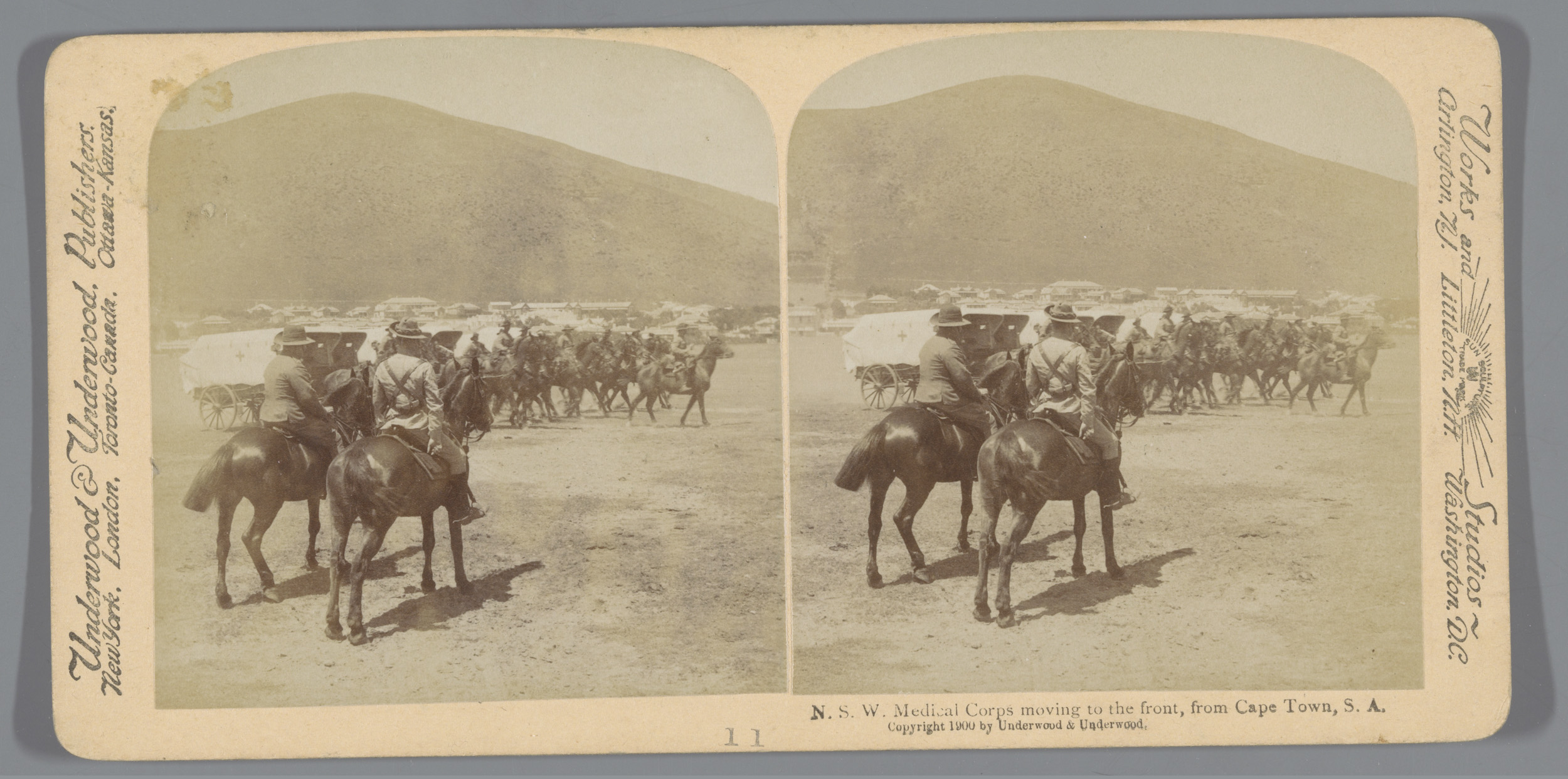 Britse soldaten te paard in Rensburg, Zuid-Afrika