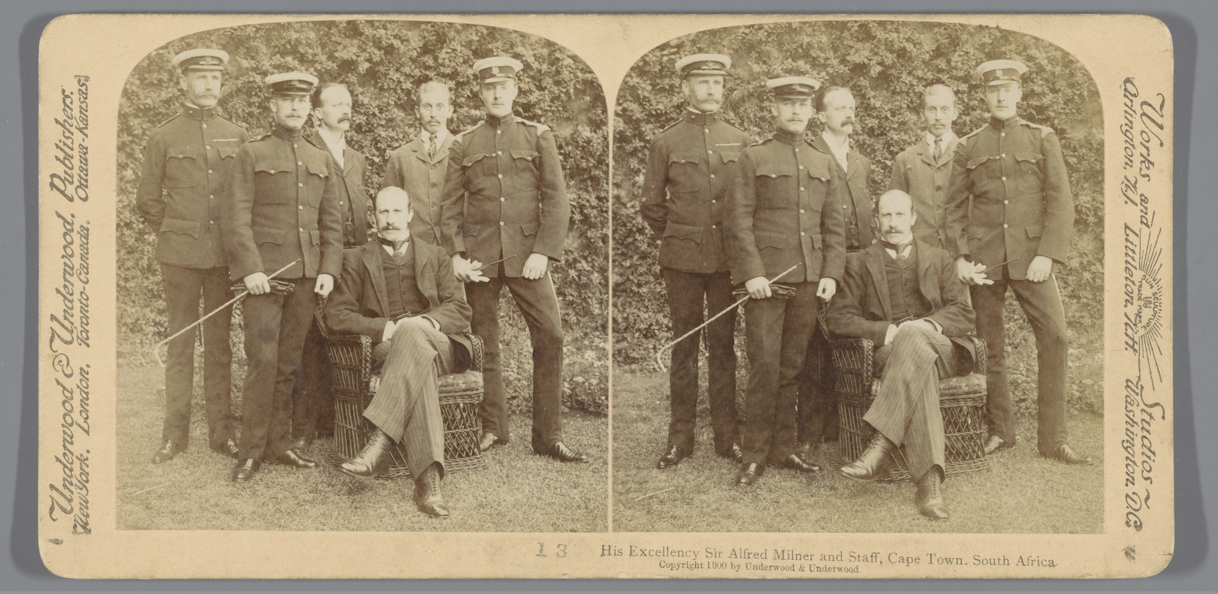 Portret van Sir Alfred Milner met zijn personeel in ...