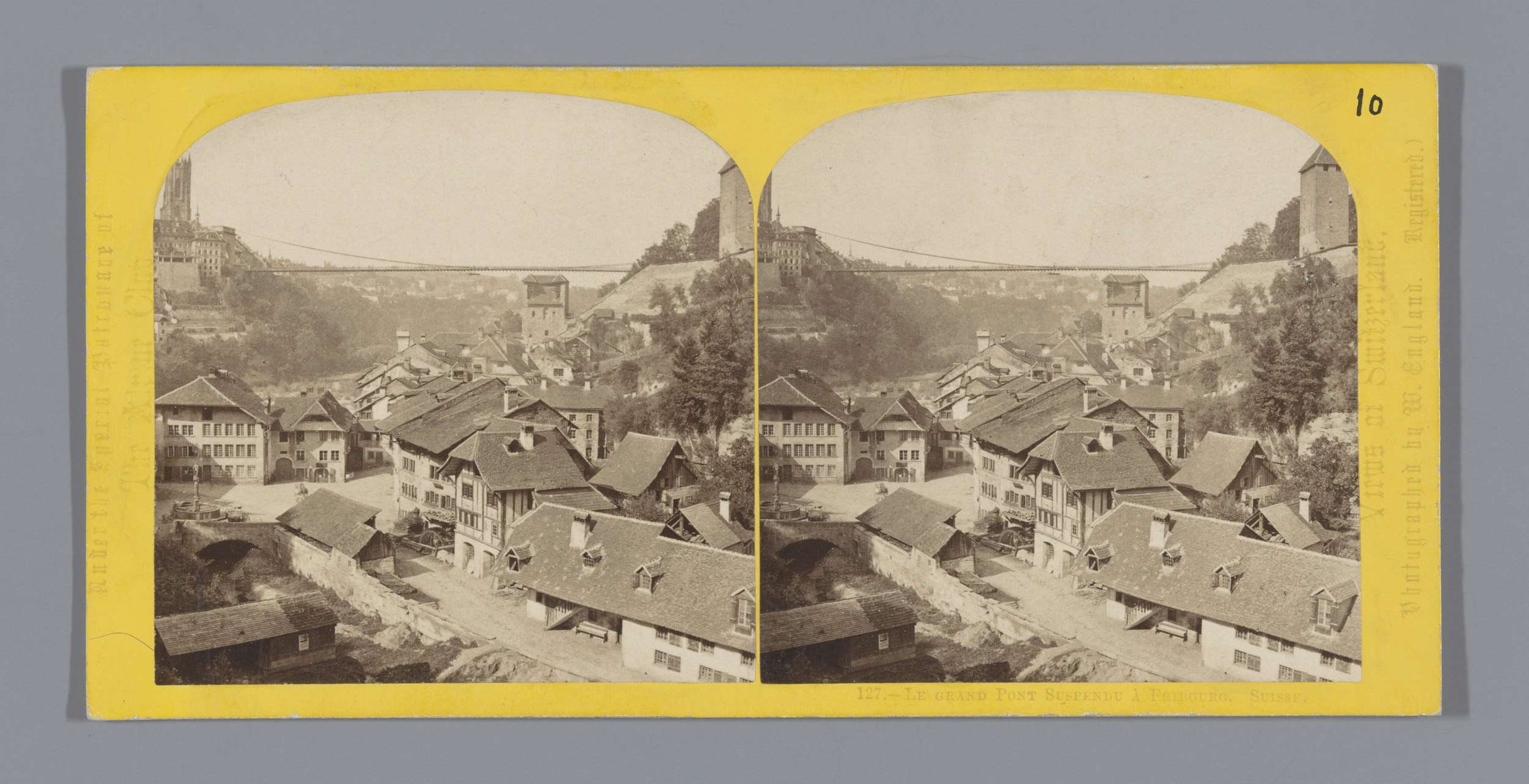 Gezicht op Fribourg met hangbrug, Zwitserland