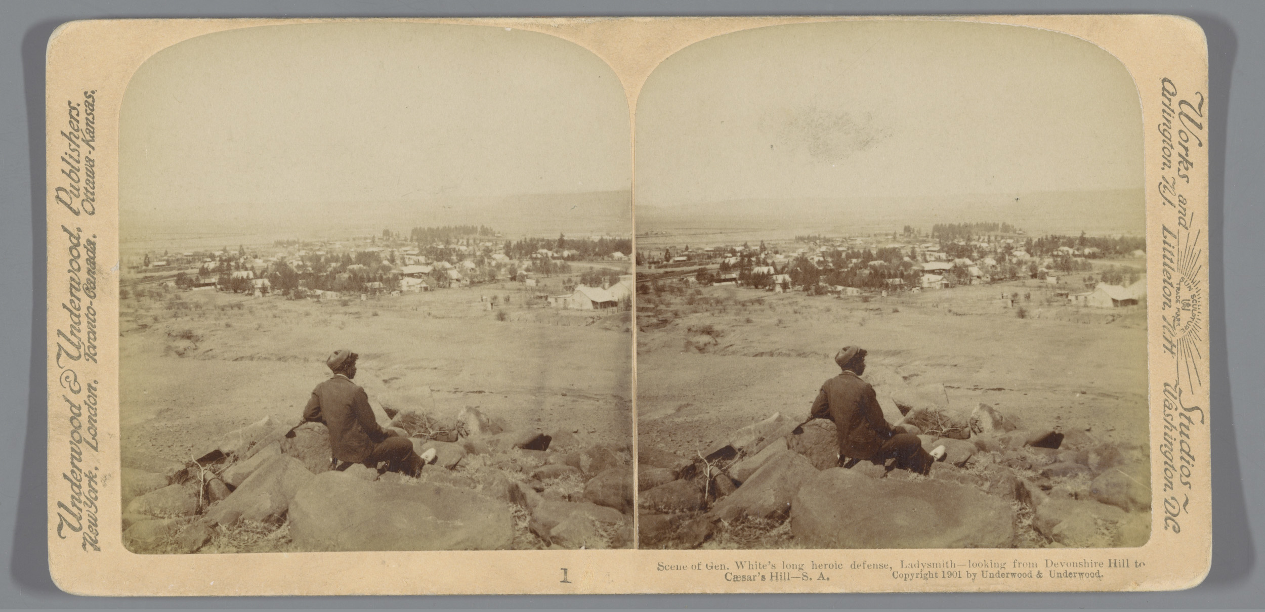 Gezicht op Caesar's Hill met zittende man op de voor...
