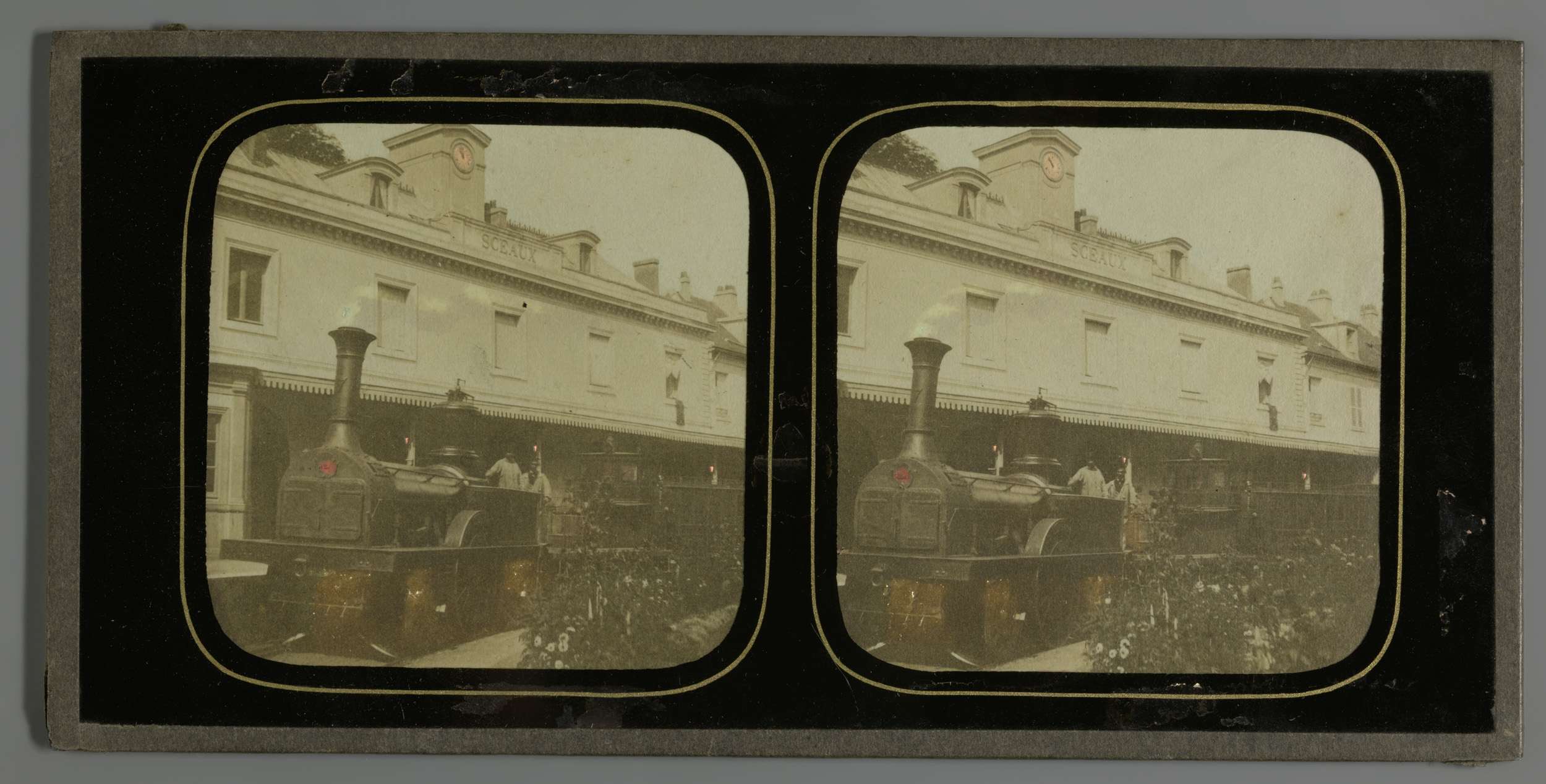 Stoomlocmotief voor het stationsgebouw te Sceaux