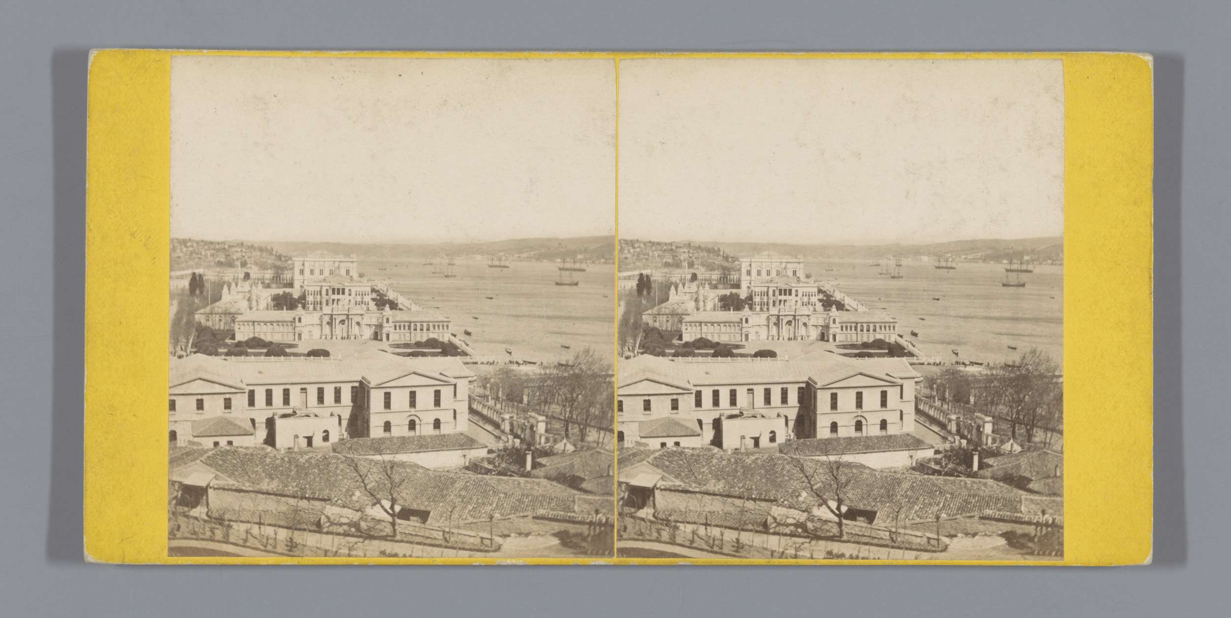 Gezicht op het Dolmabahçepaleis aan de Bosporus, Con...